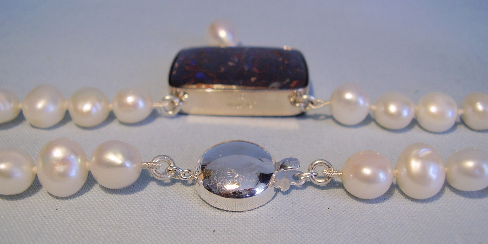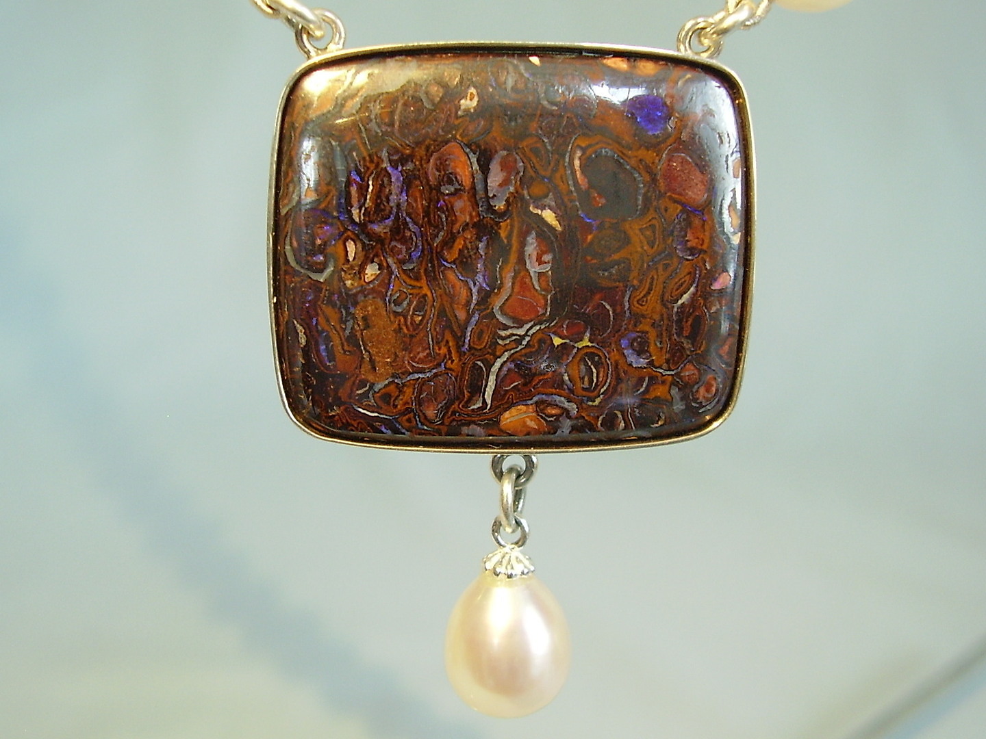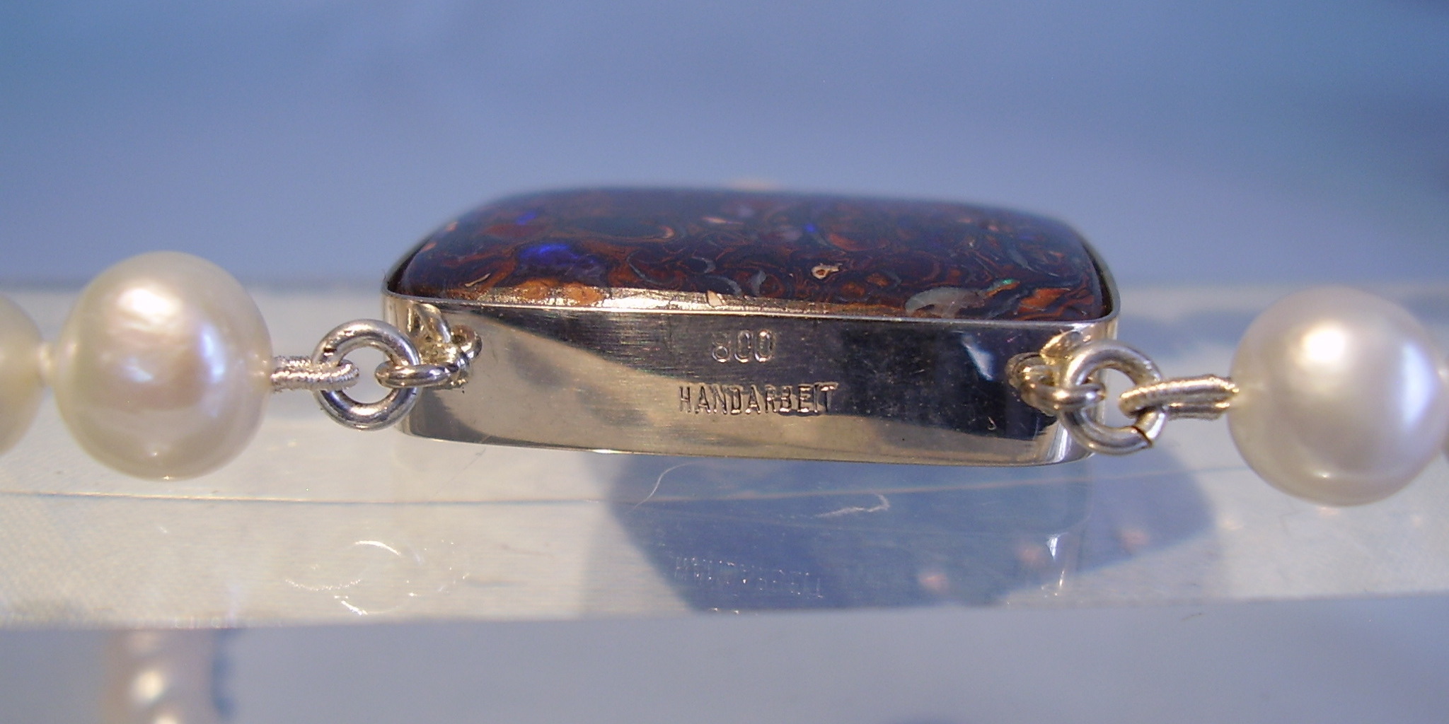 450246. BOULDER OPAL HALSKÆDE 52,7 ct. Sølv 800 håndlavet.