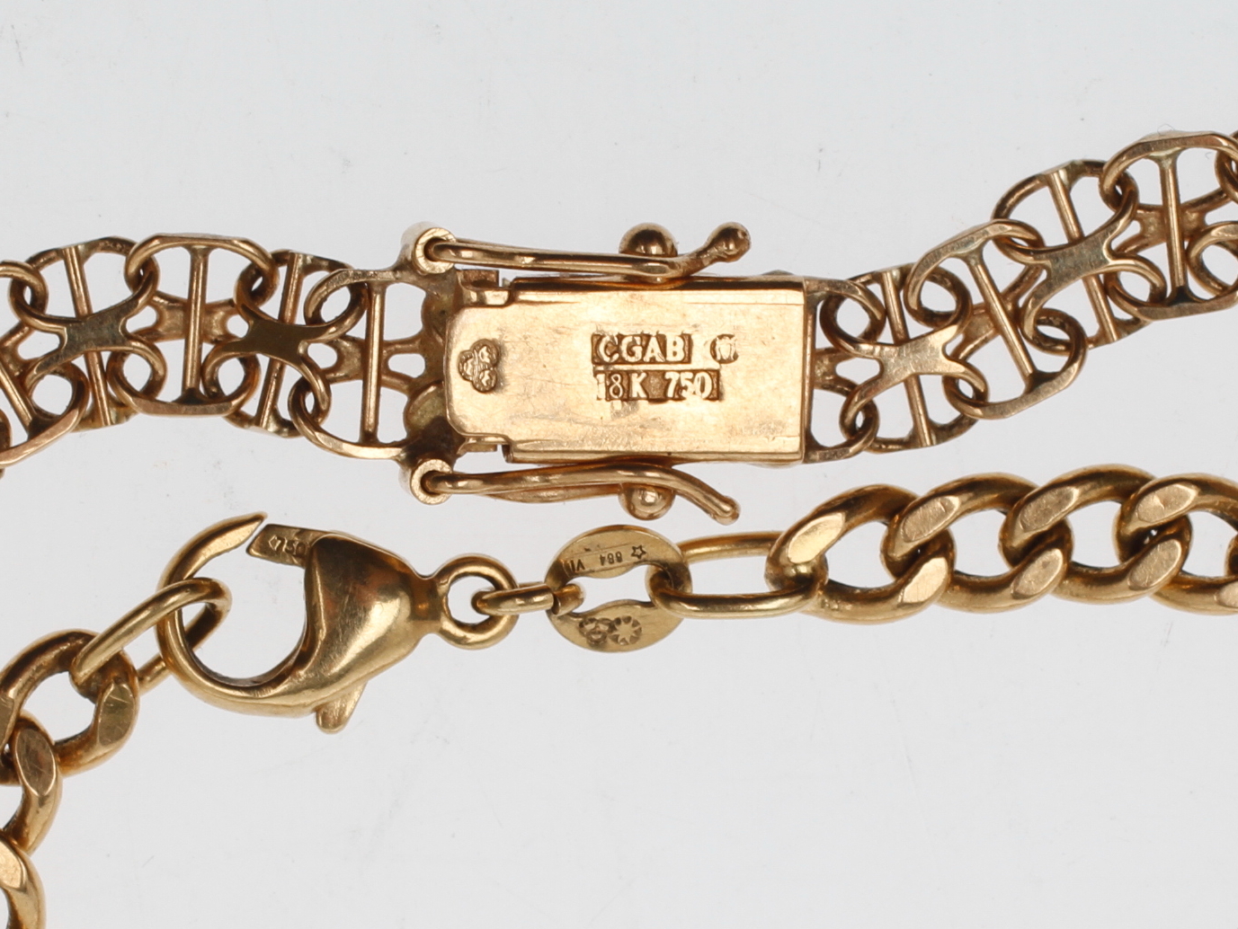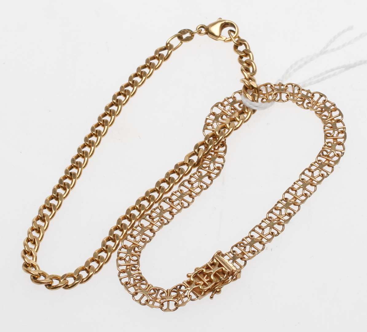 45029. ARMBÅND, 2 stk, 18k guld, vægt ca. 13,2 gr.