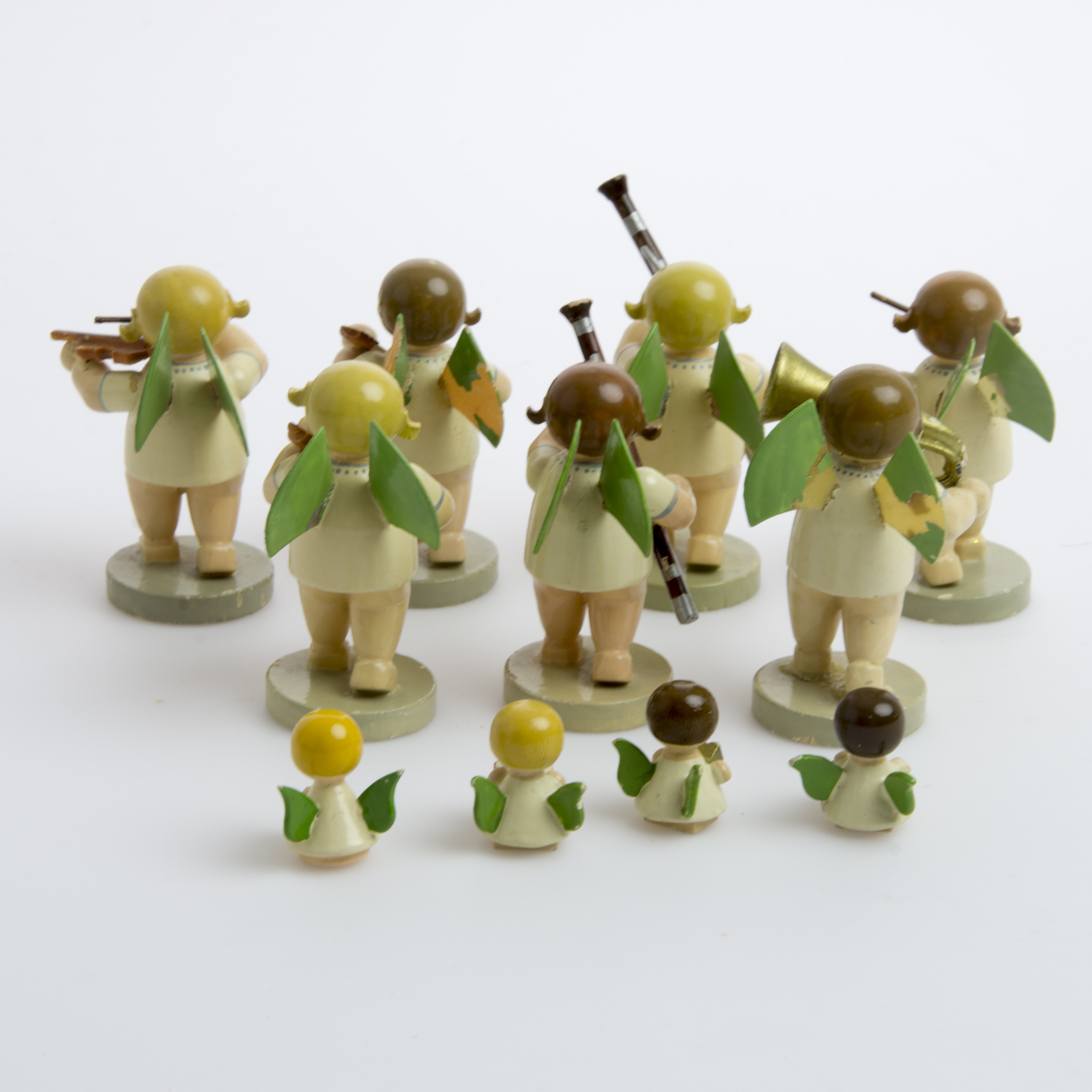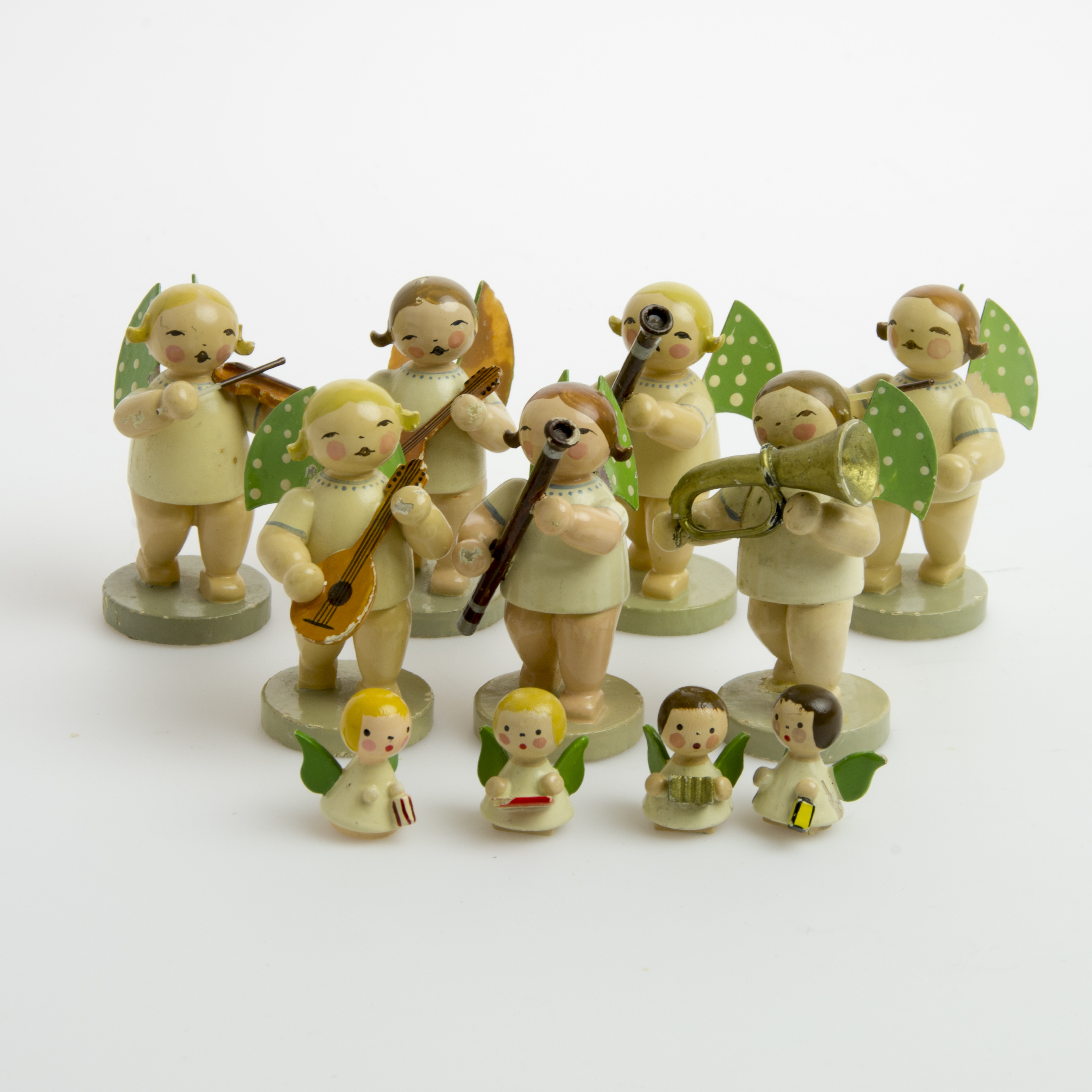 450571. FIGURER, 11 stykker, træ, engleorkester, Wuk.