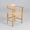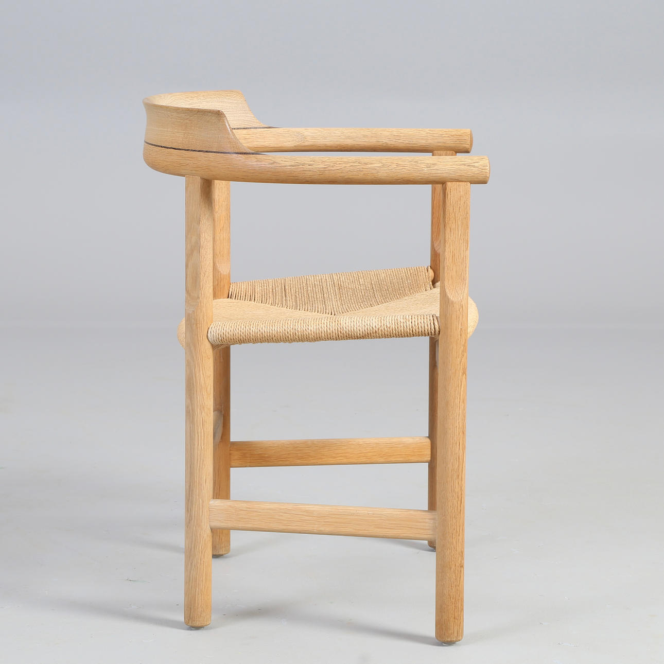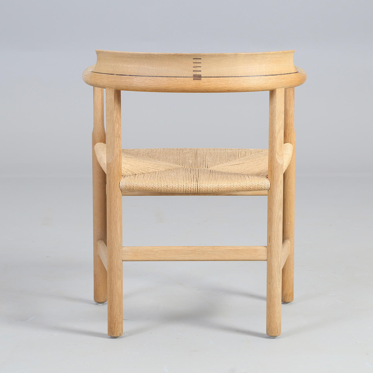 PP62 / "Captains Chair" armstol af massivt, sæbebehandlet egetræ med indlæg af wengé, sæde monteret med flettet papirgarn. Fremstillet hos PP Møbler med mærkat herfra. H. 72,5, B. 57, D. 50,5 cm. Sh. 42 cm.