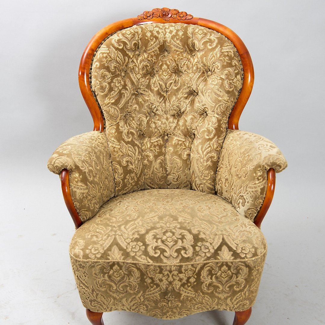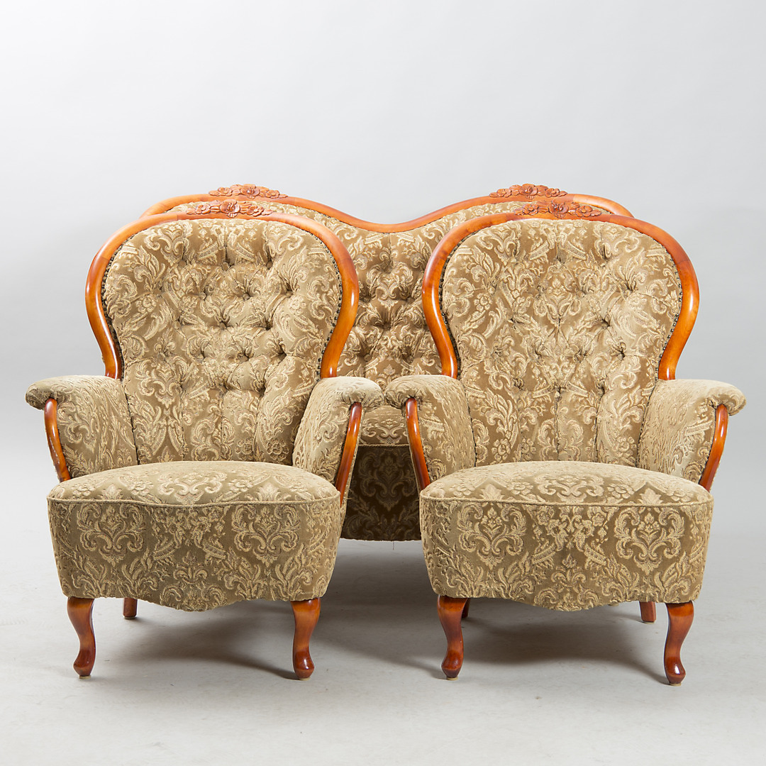 451206. SOFAGRUPPE, skulptureret plys, rokoko stil.