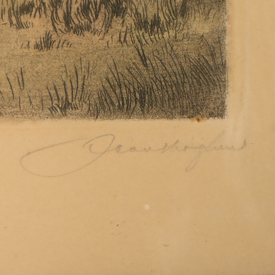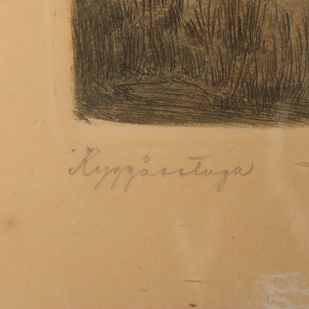 4517648. JEAN SKOGLUND. FARVEÆTSNING, „Ryggåsstugan“ signeret.
