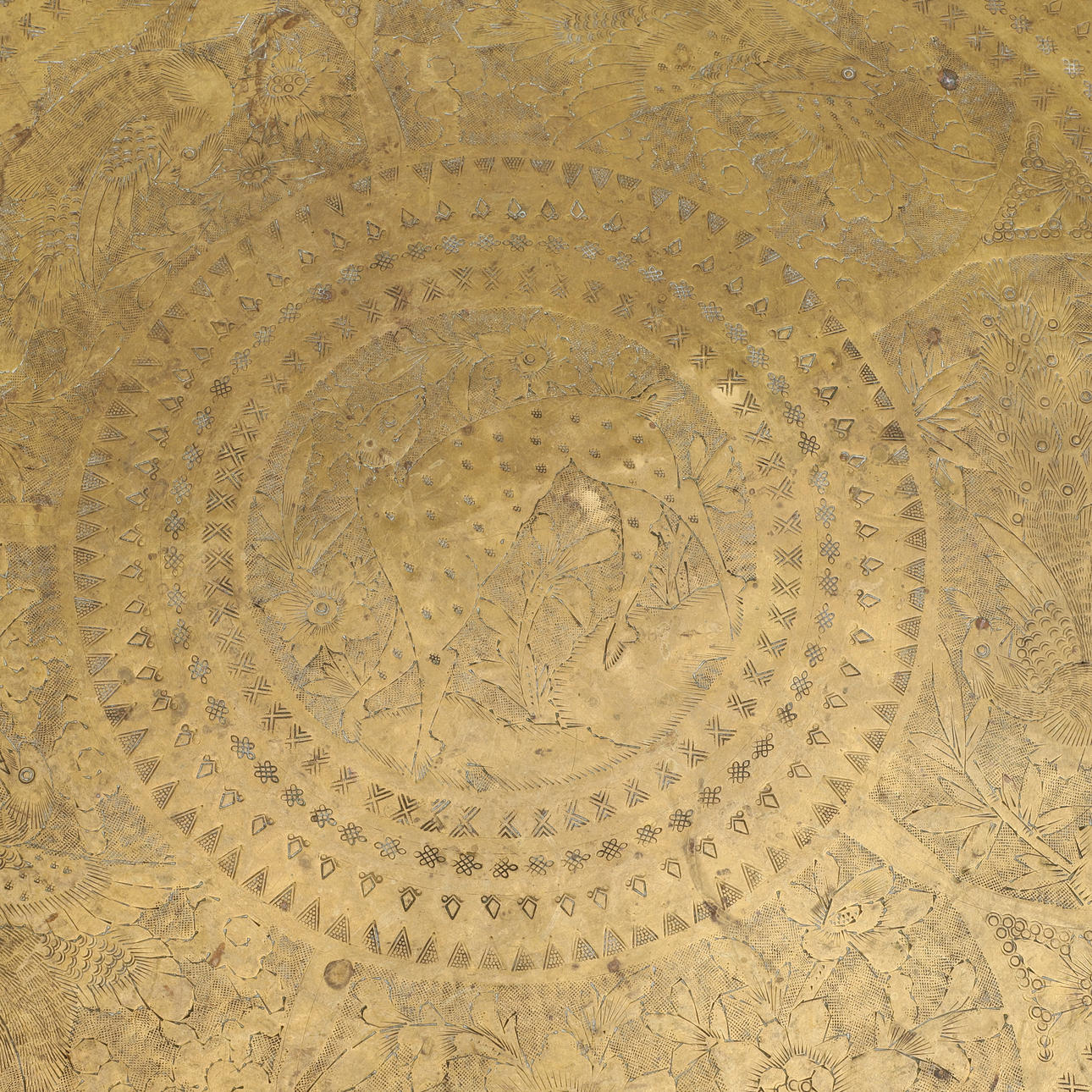 BAKKEBORD, træbund med messingplade.