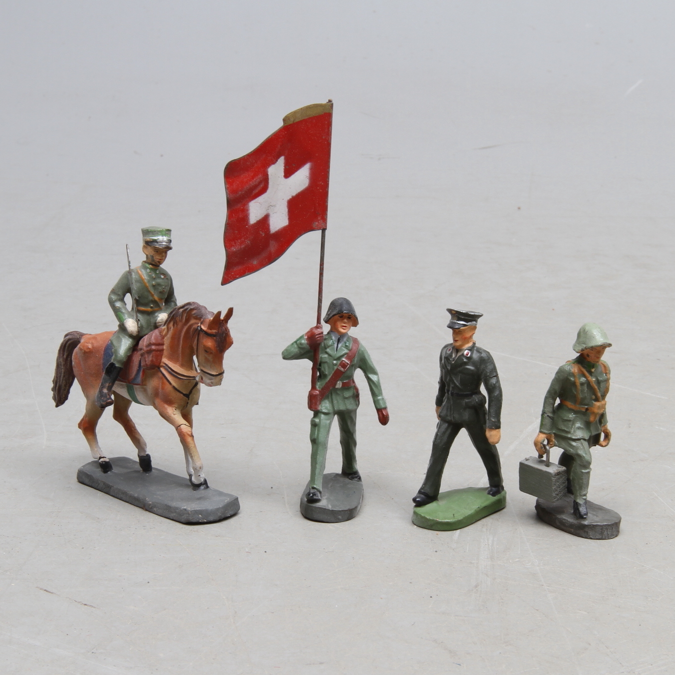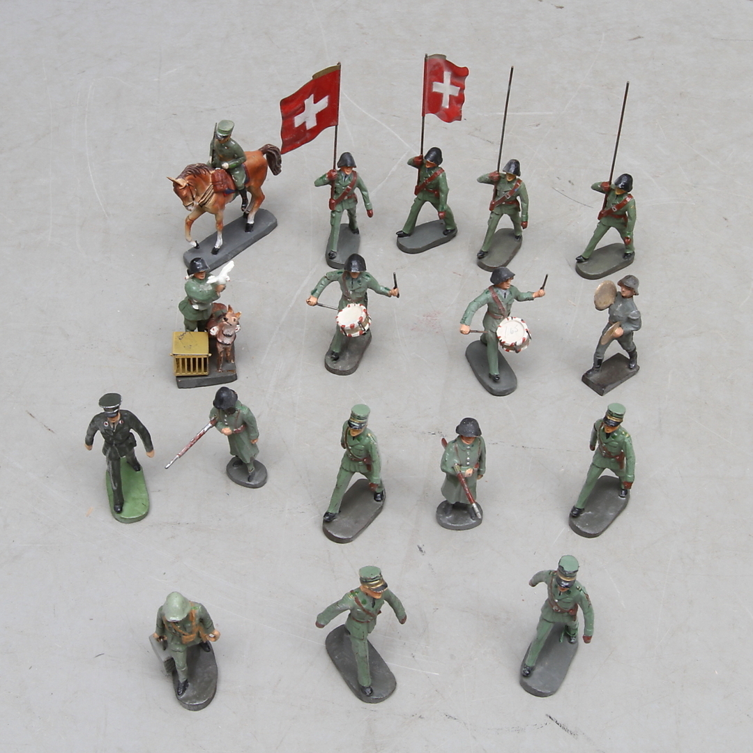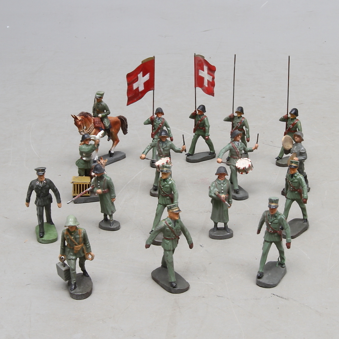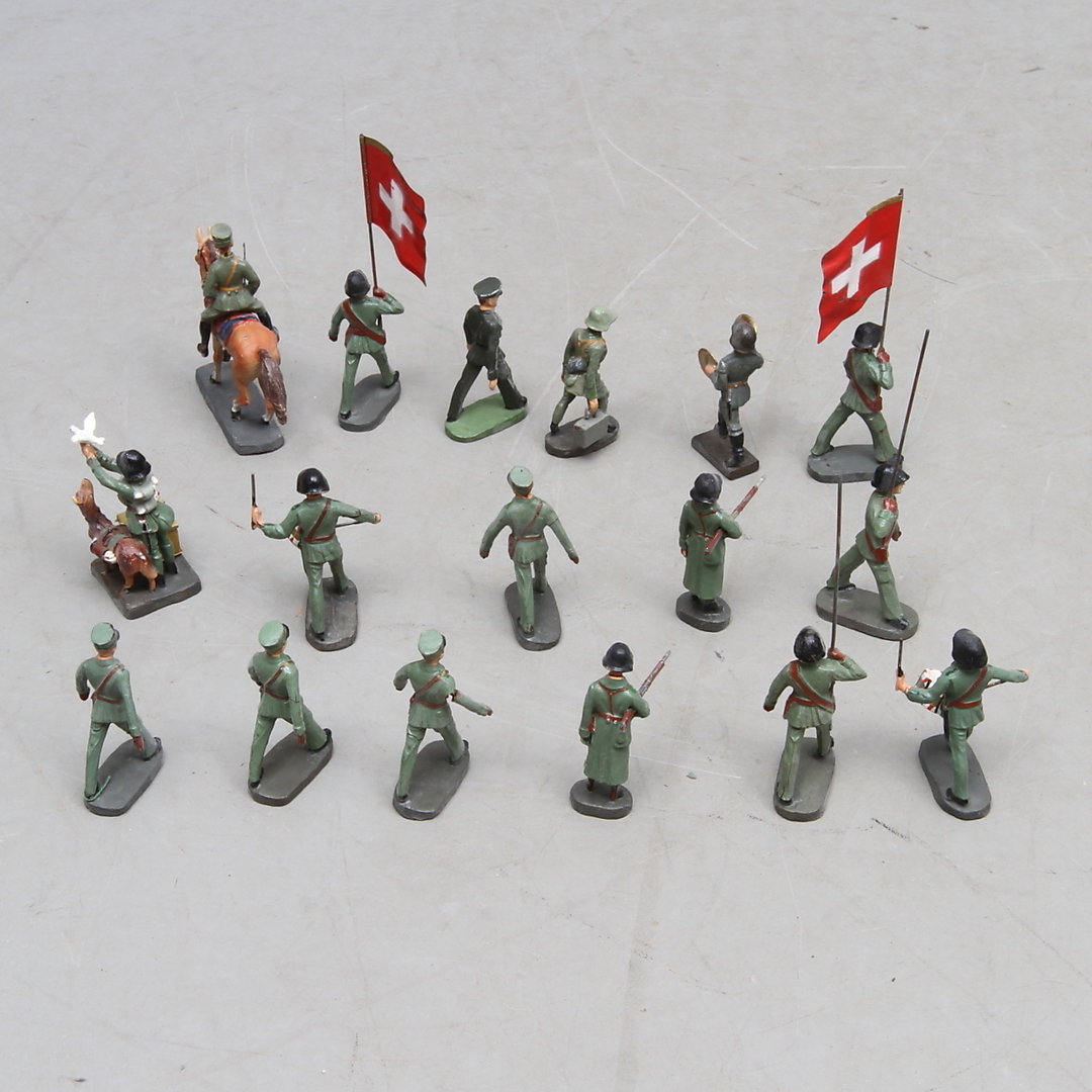 453388. ELASTOLIN 17 soldater, en til hest.