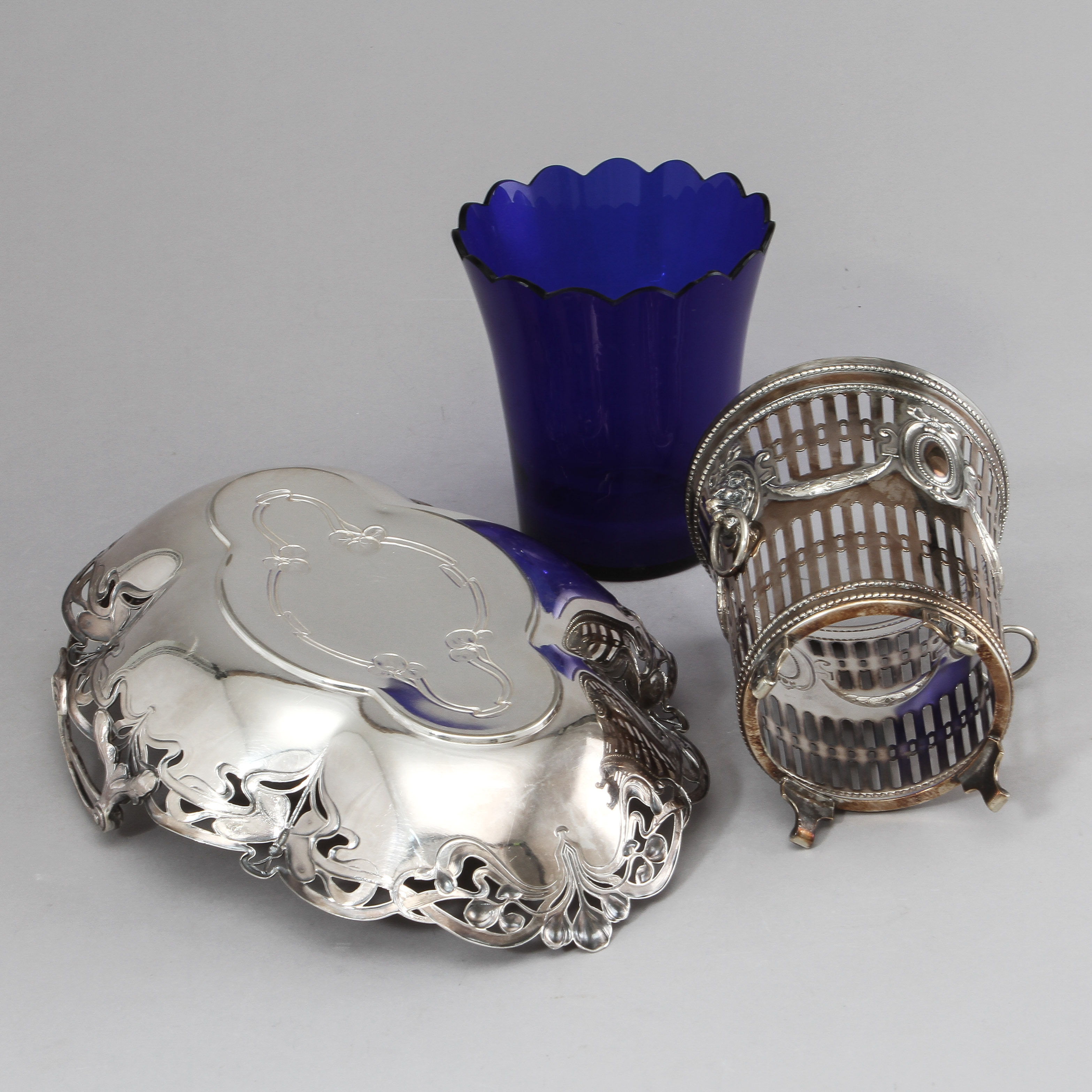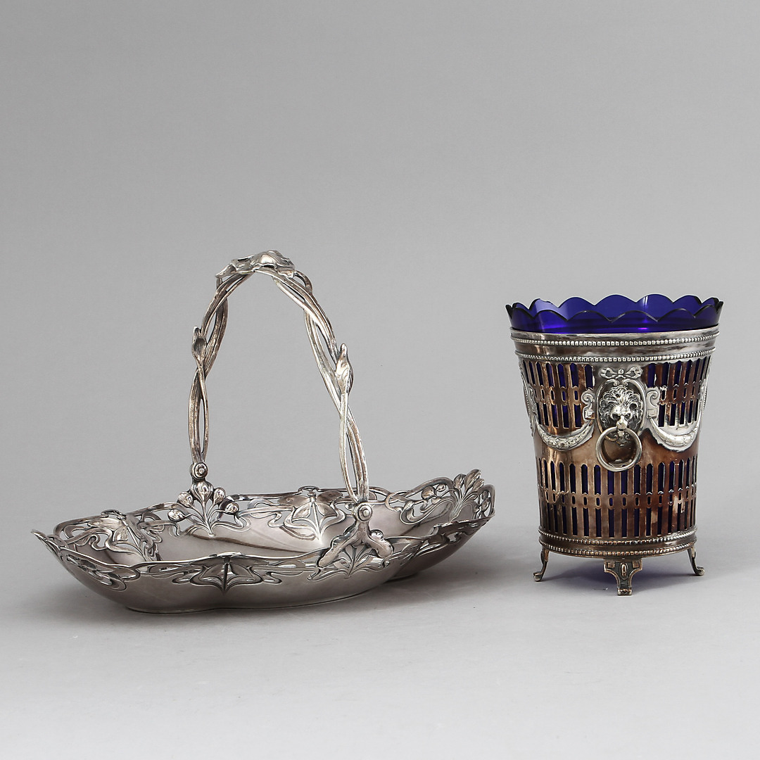 453658. VASE og JARDINIÈRE, nysølv.