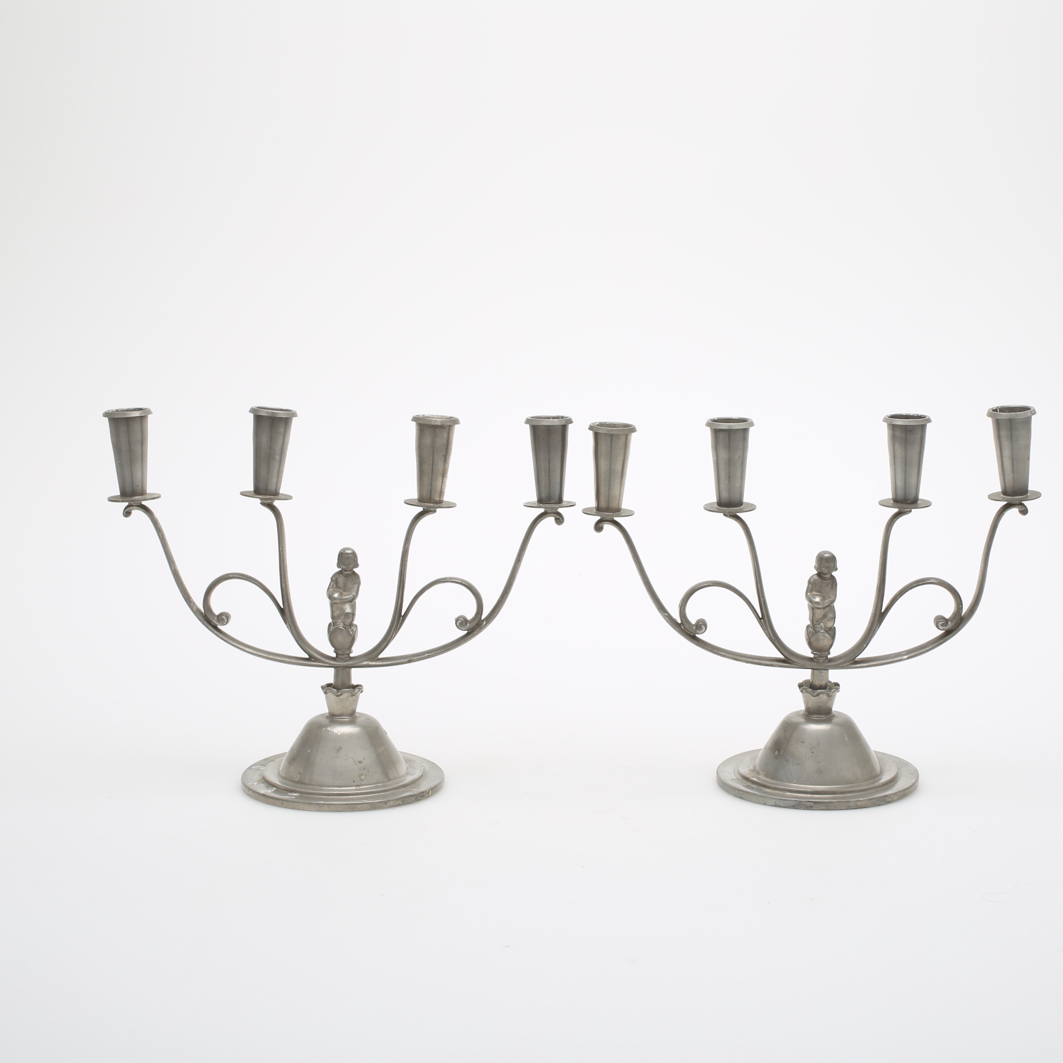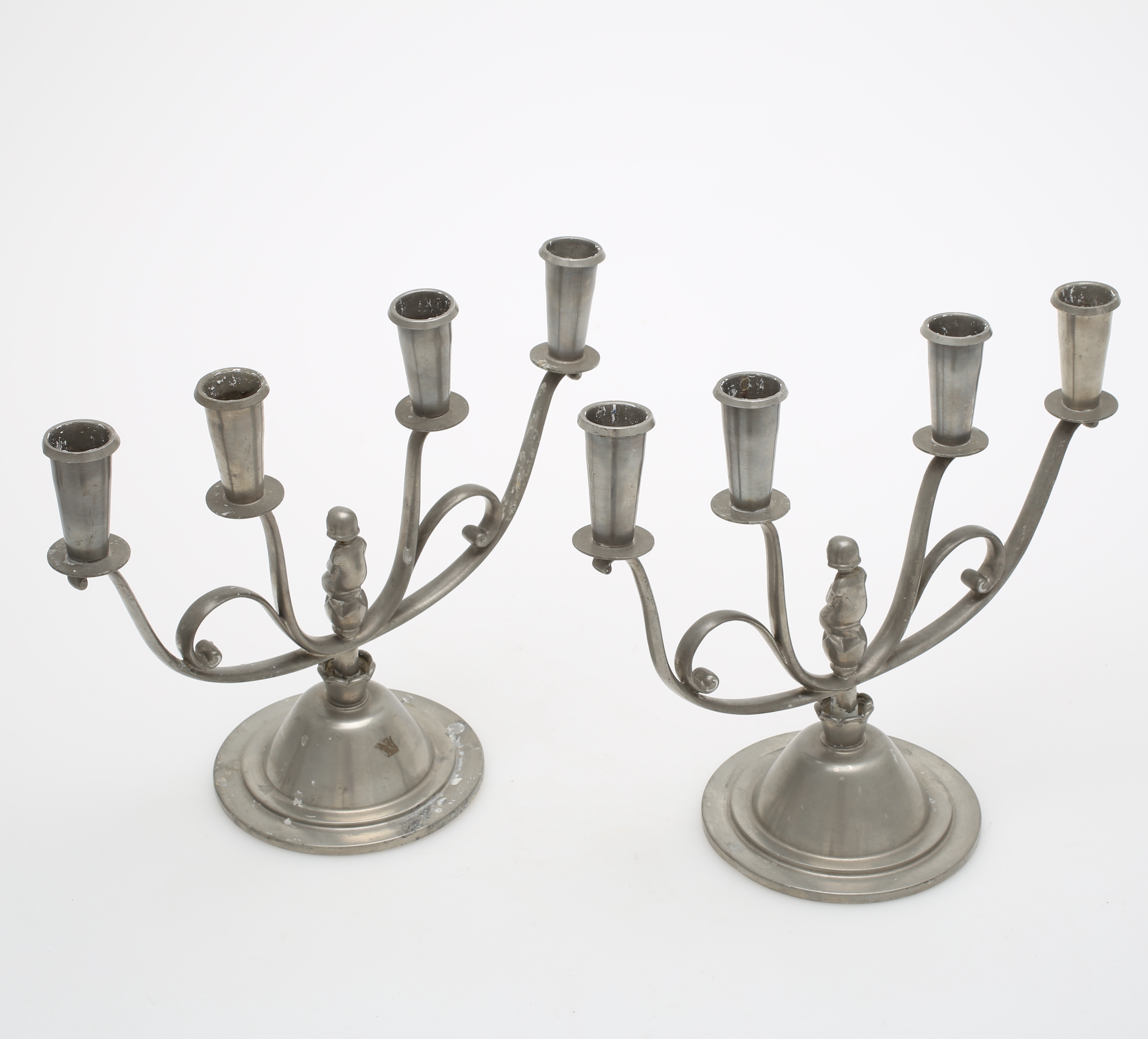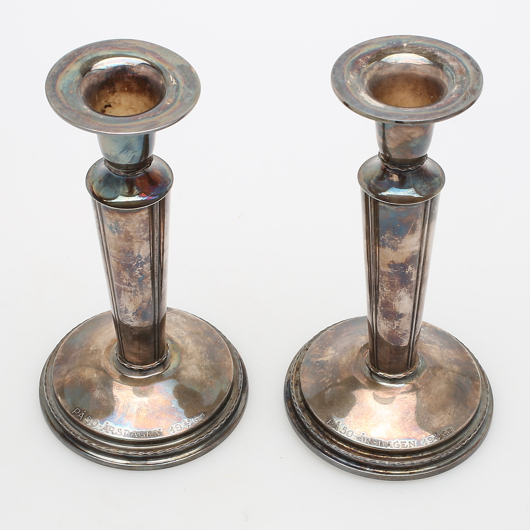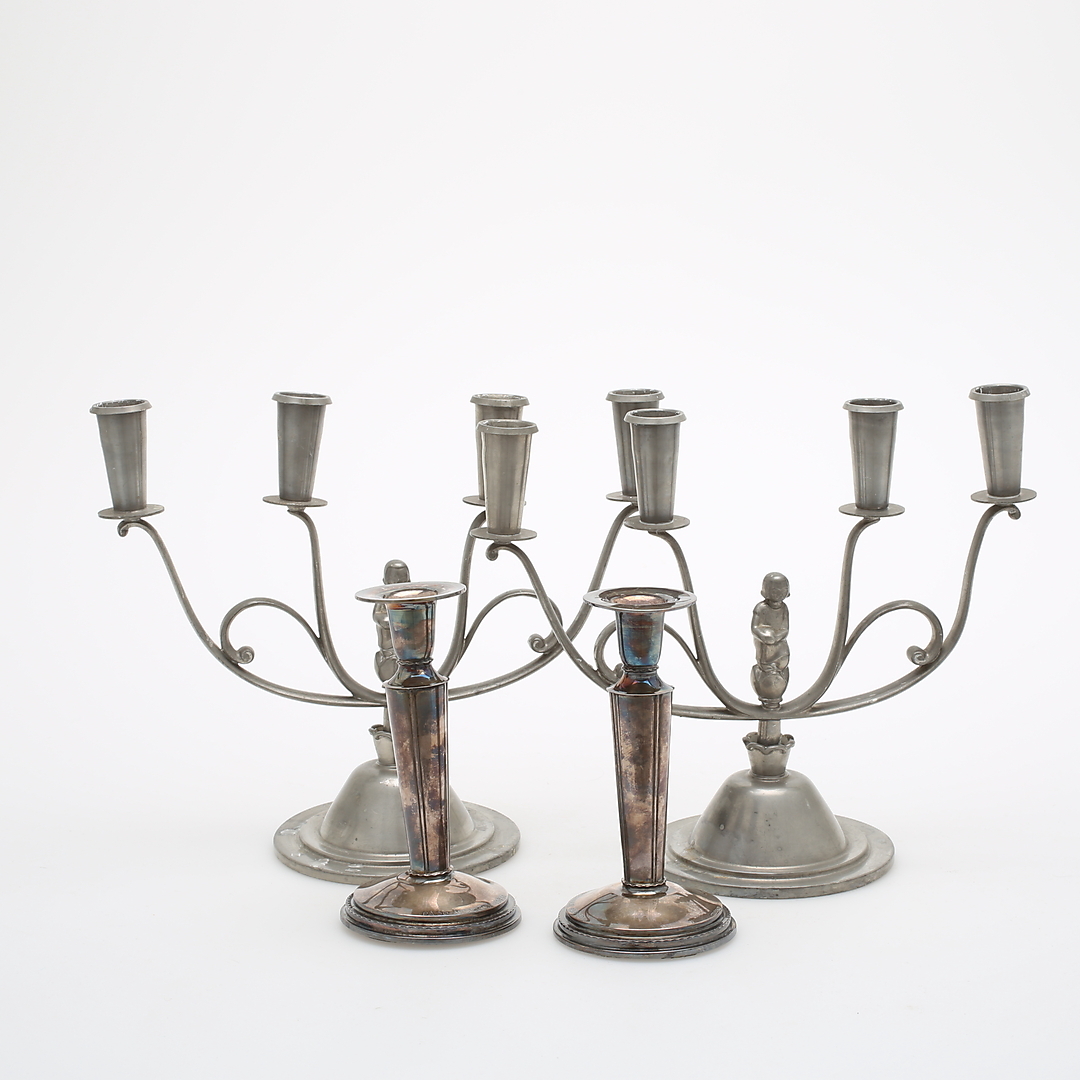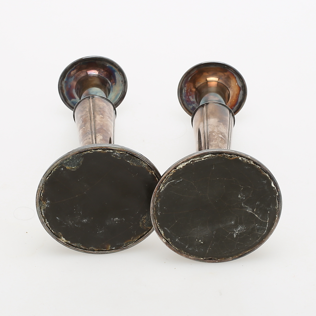 453727. Lysestager, 2 par, sølv og tin.
