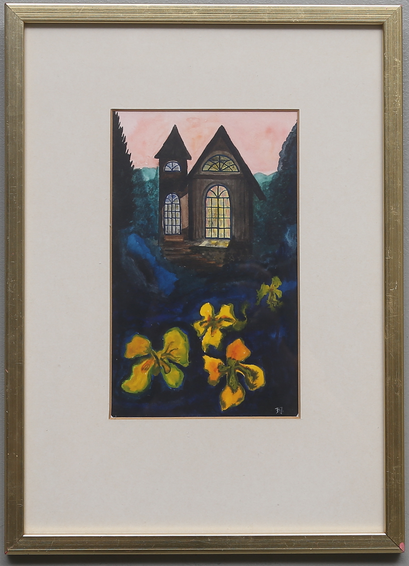 454845. OIDENTIFIERAD KONSTNÄR. gouache, signeret BJ.