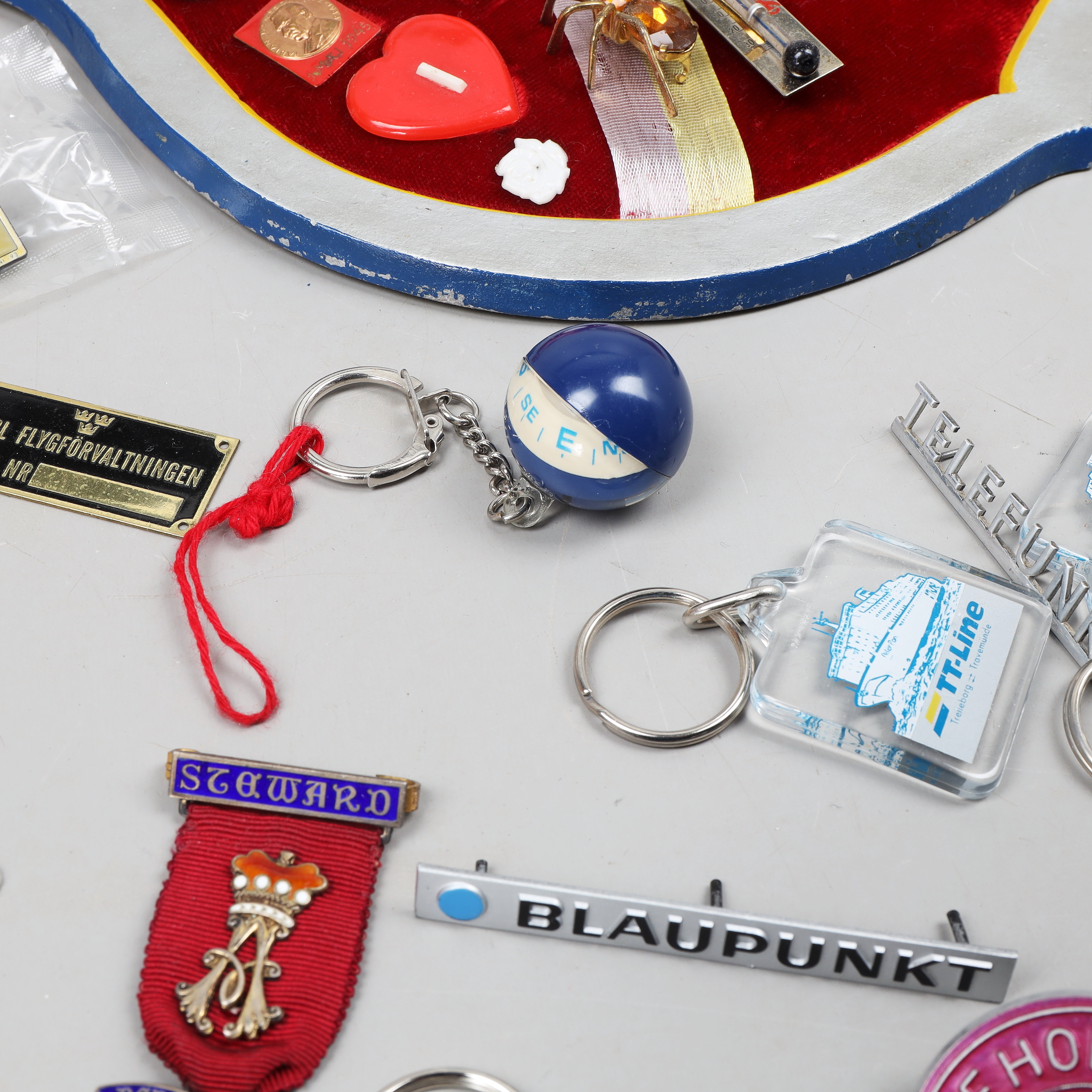 4550082. PIN-EMBLEMÆRKER, NØGLERINGE m.m., 20. århundrede.