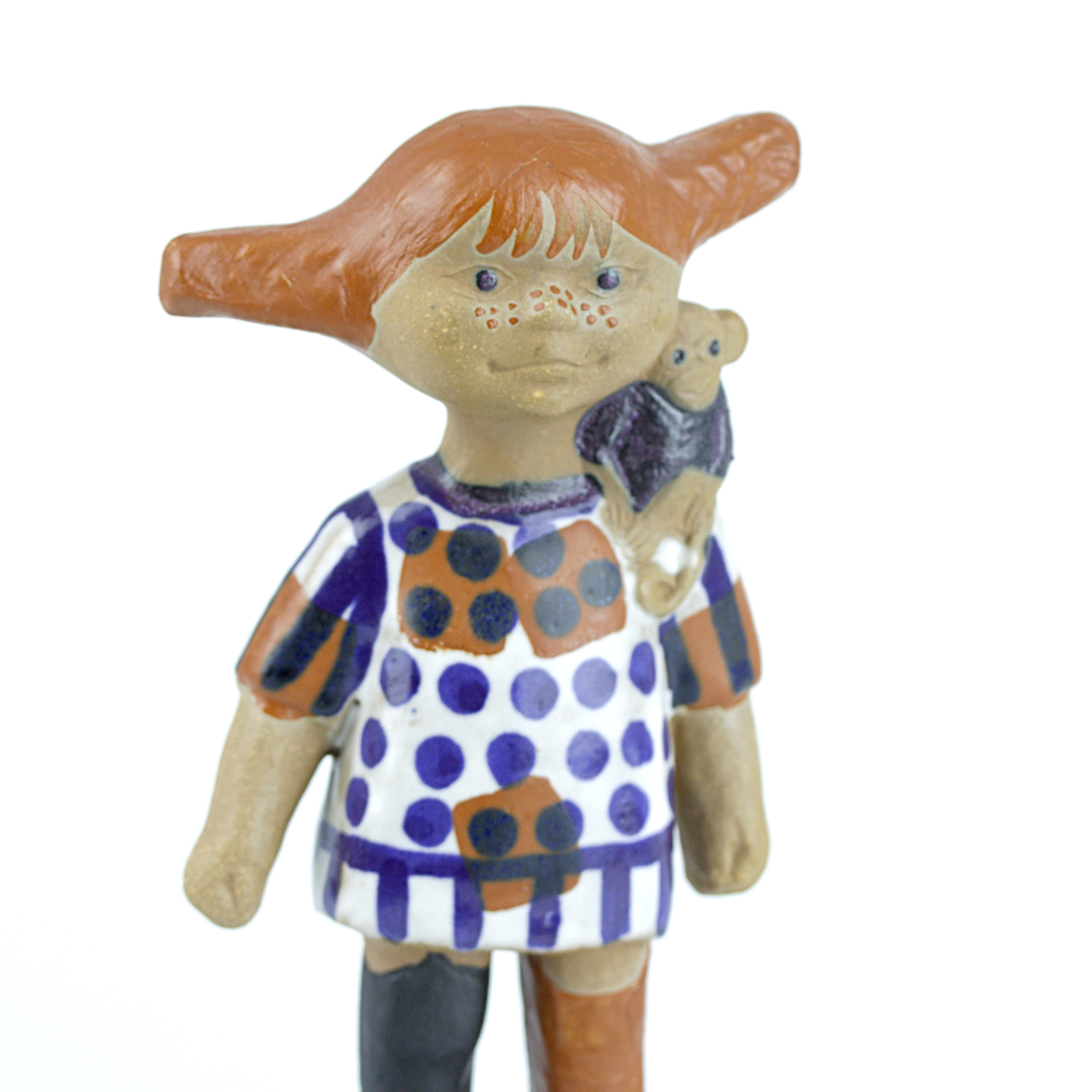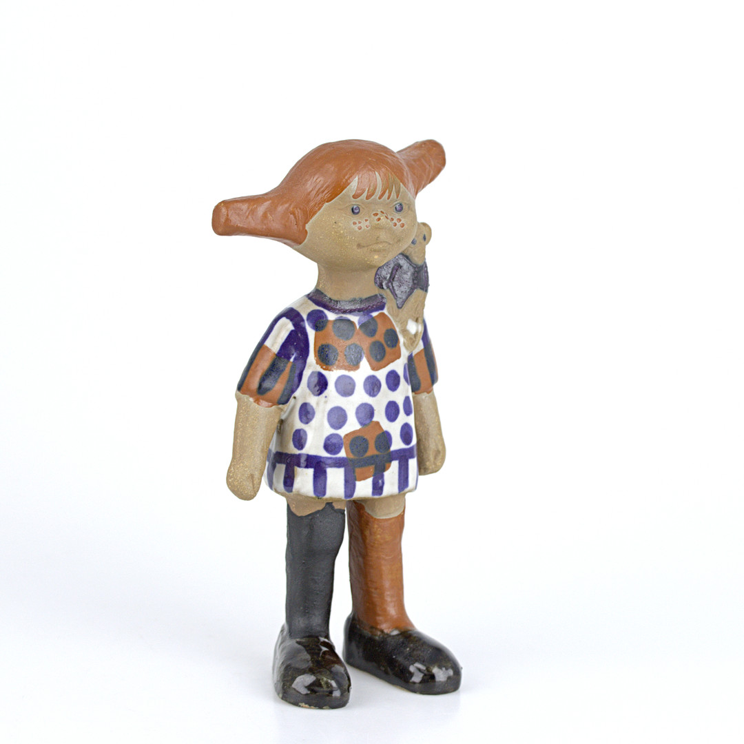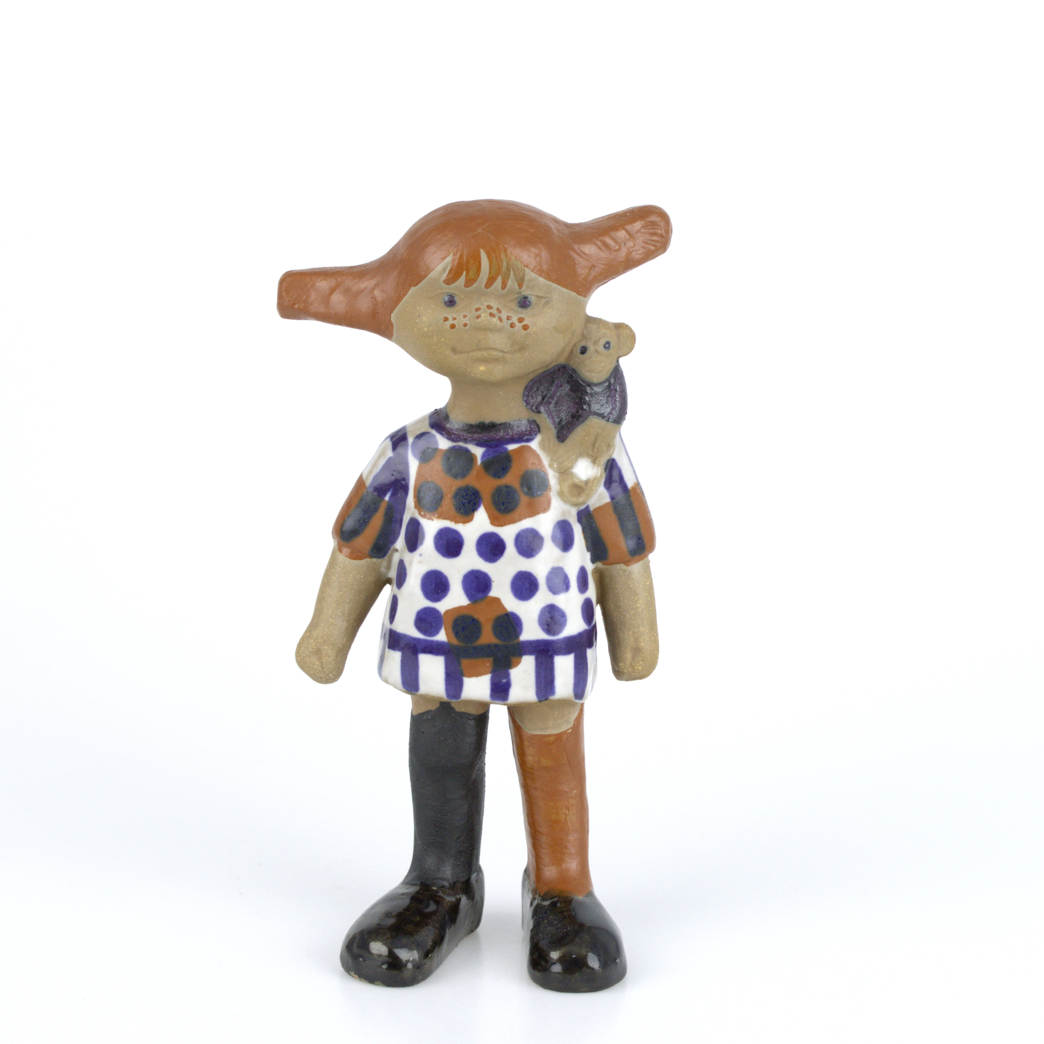 4553337. LISA LARSON. Figur, „Pippi Langstrømpe“, stentøj, stemplet Pippi Langstrømpe, Lisa Larson, Gustavsberg.
