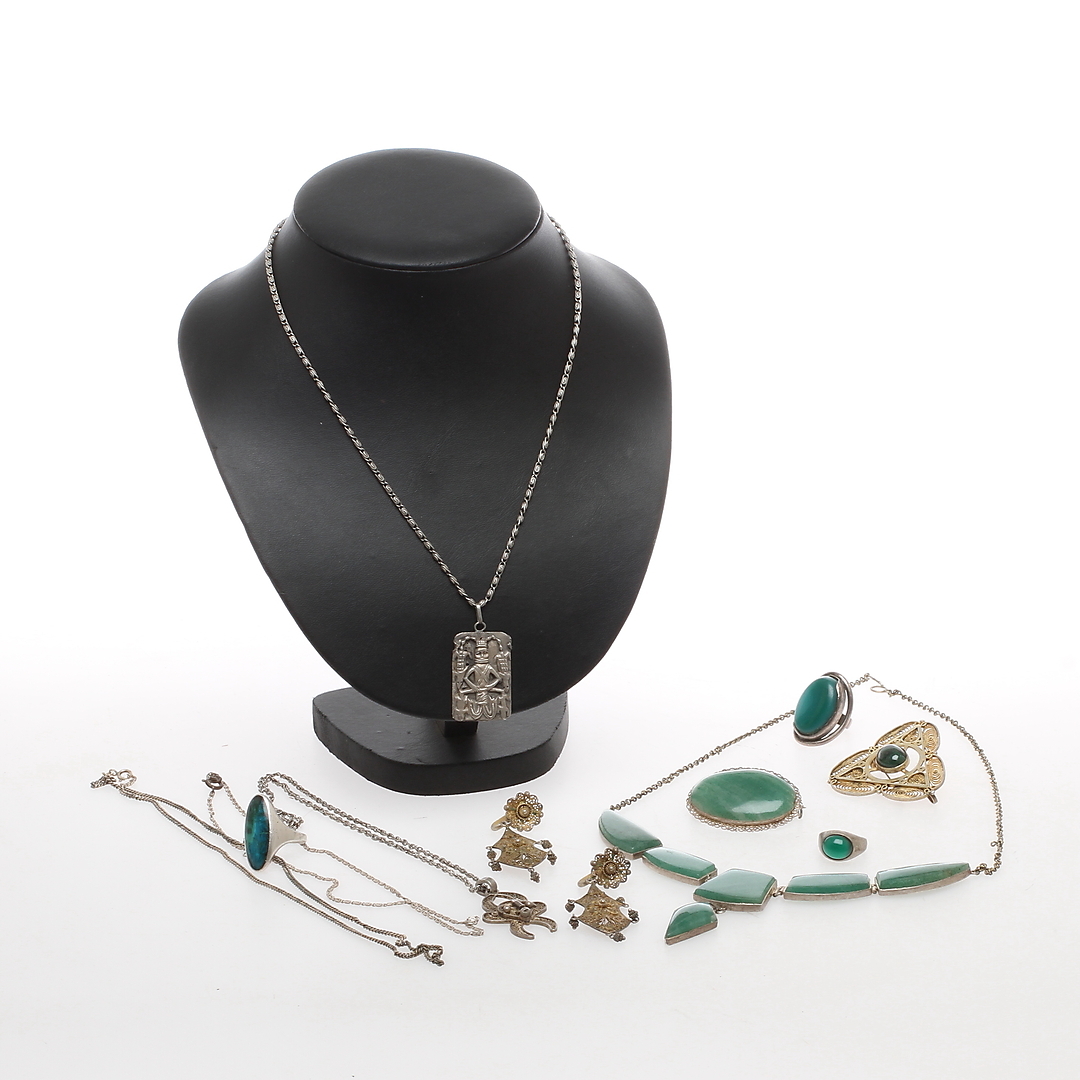 455358. SMYKKER, 11 dele, sølv, 20. århundrede.