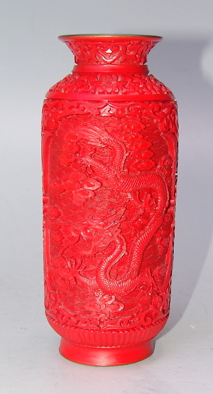 455367. RØD LAKVASE, 20. århundrede kinesisk.