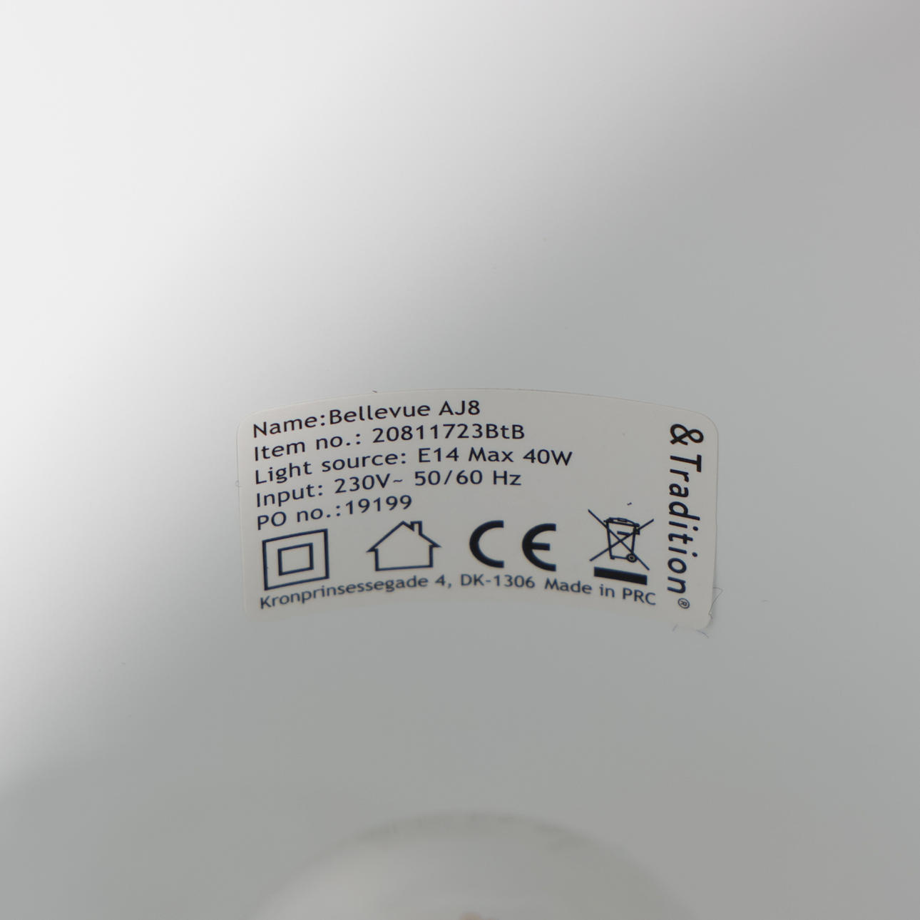4558612. ARNE JACOBSEN. Bordlampe „Bellevue AJ8", &Tradition, Danmark.