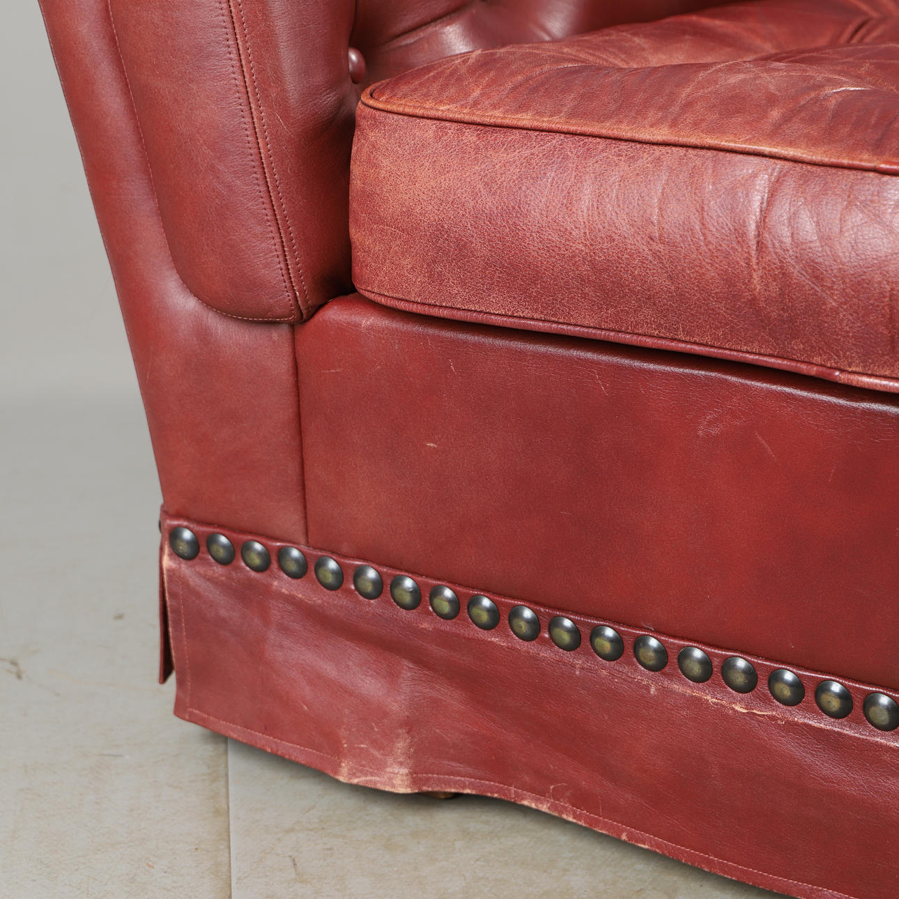 4563870. SOFA, rød læder fra midten af 1900-tallet.