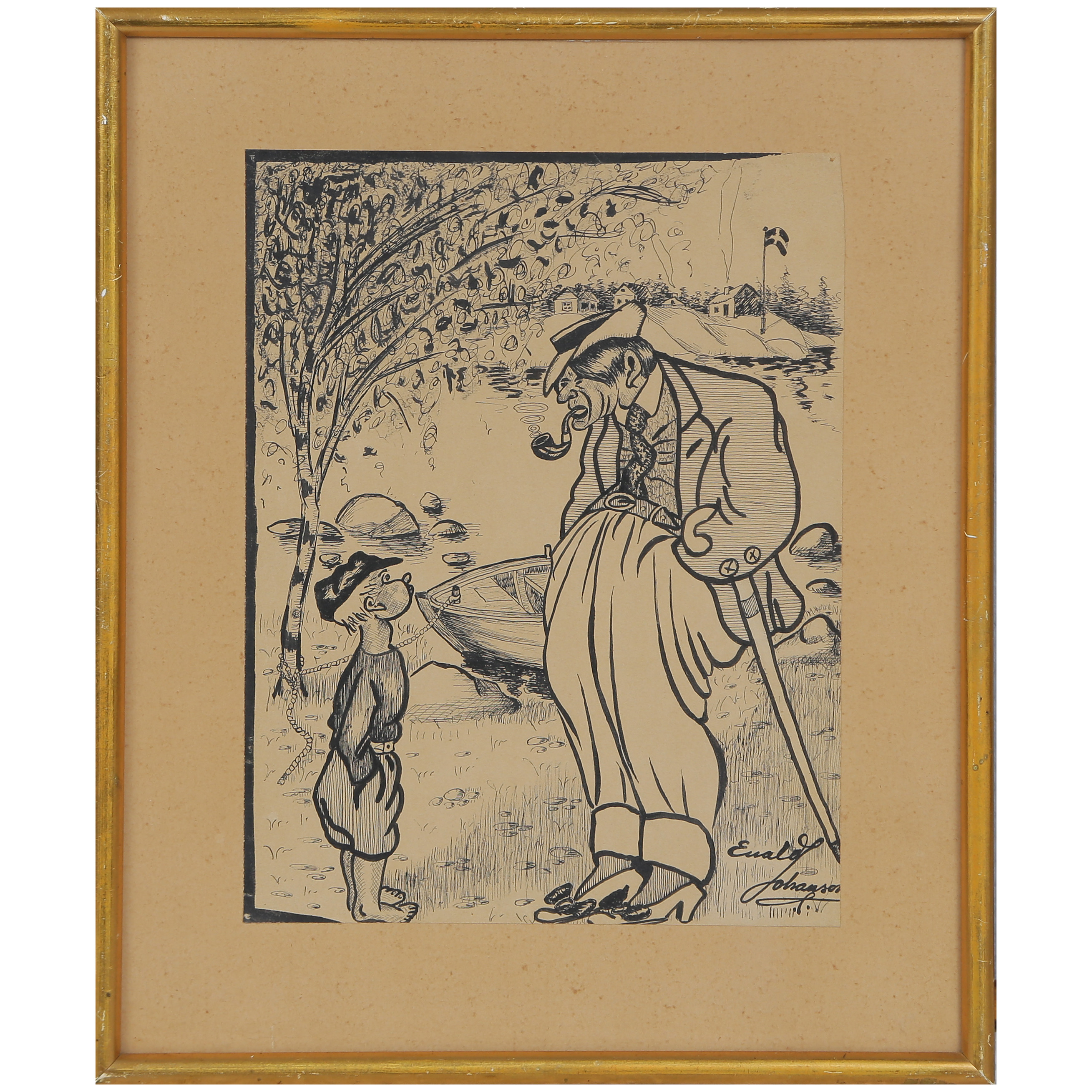 4566346. EVALD JOHANSON „KARIKATUR“ SIGNERET.