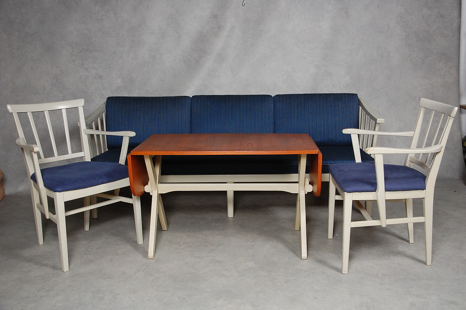 456751. CARL MALMSTEN. sofa "Visingsö" stole 1 par, bord med klapper.