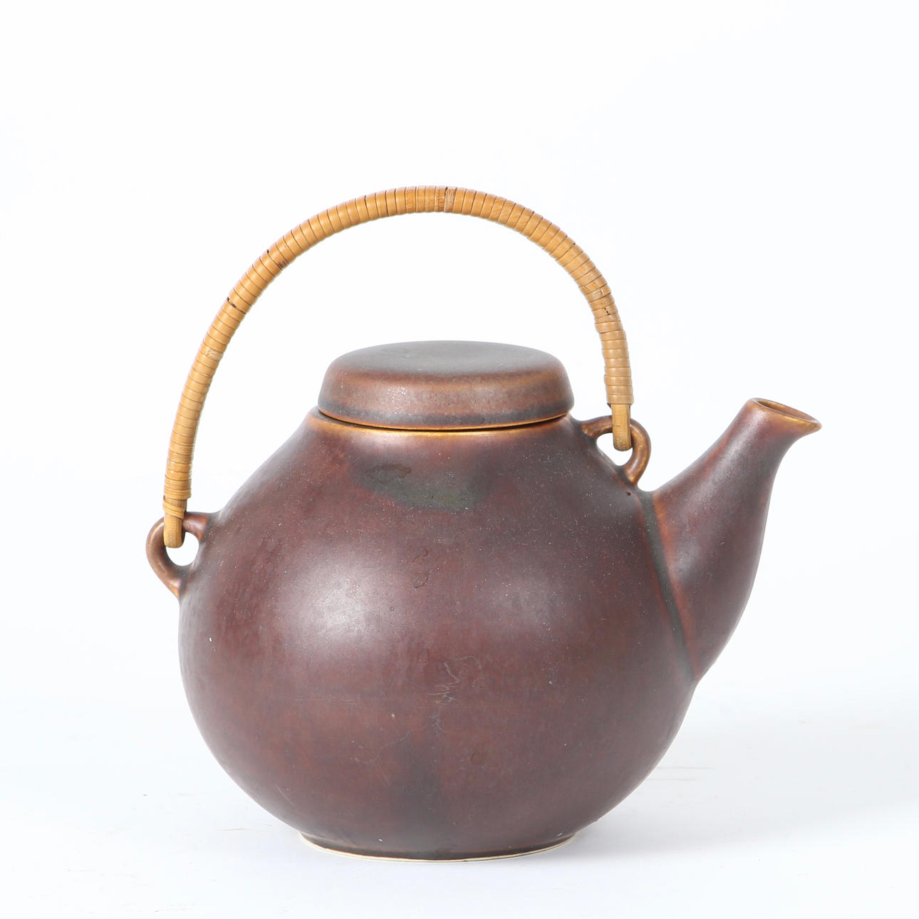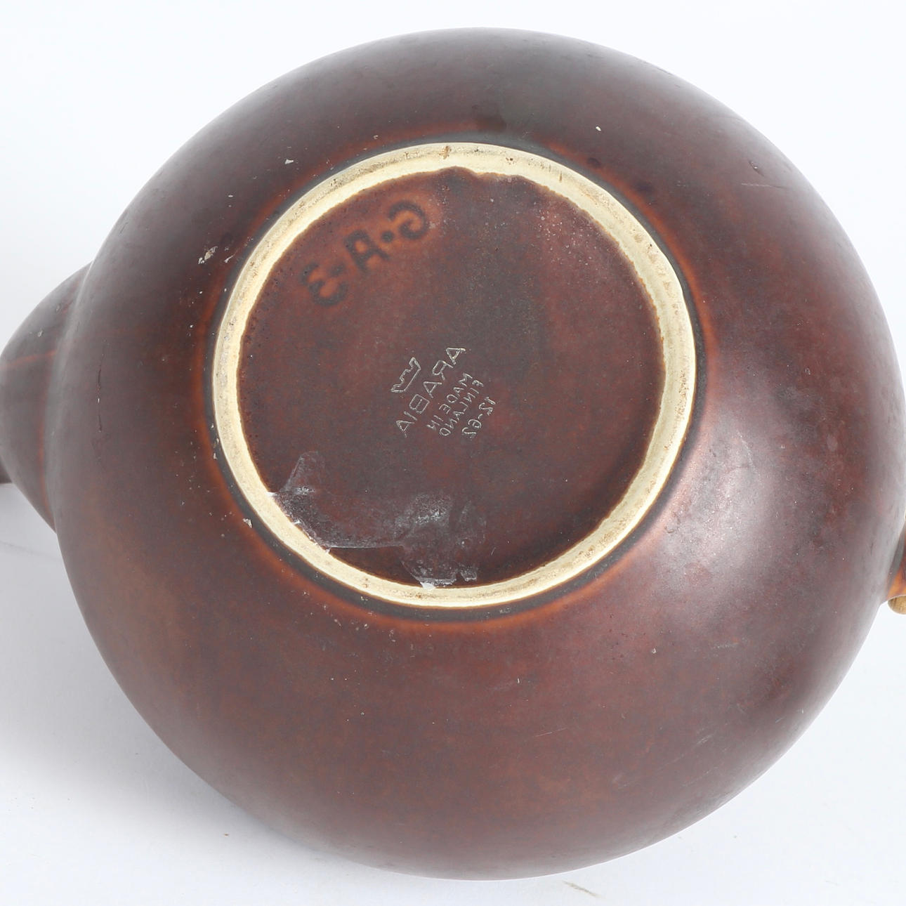 "GA3" tekande af stentøj dekoreret med brun glasur, hank beviklet med naturrattan. H. 20 cm. Stemplet Arabia samt 'GA3'.