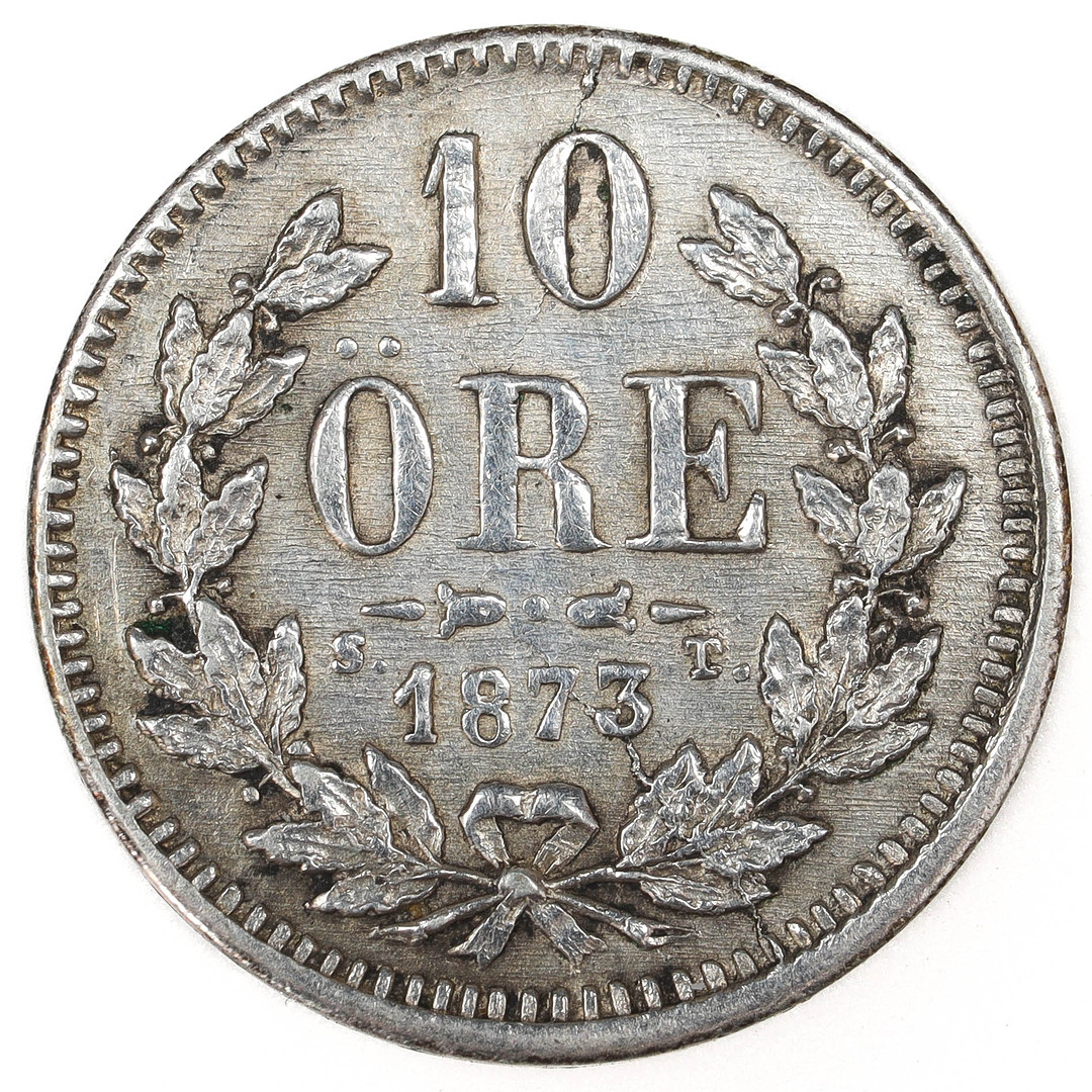 4573176. MØNT, 10 øre, Oscar II, 1873, sølv.
