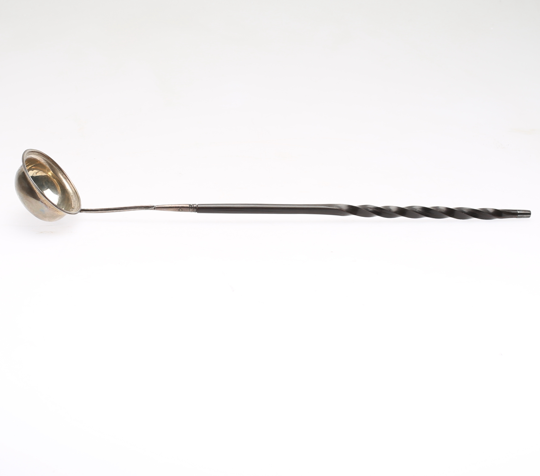 457939. PUNSCHSLEV, sølv med skaft i snoet hvalben, 1800-tallet.