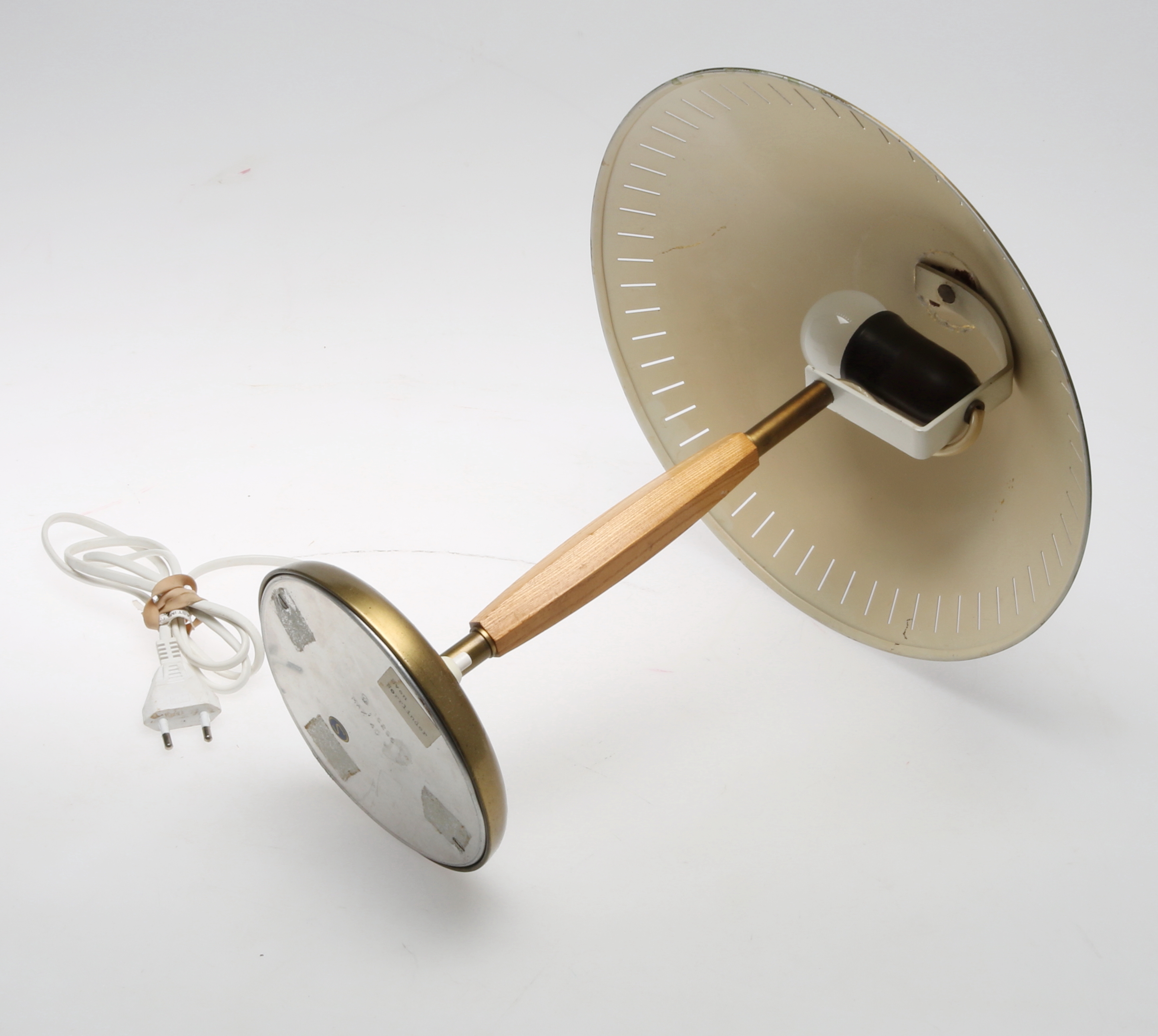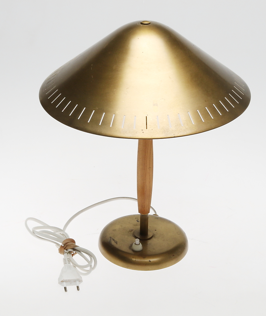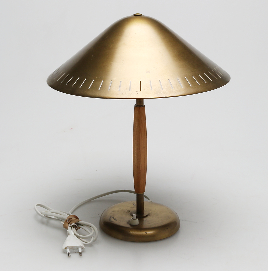 458121. BORDLAMPE, messing og træ, 20. århundrede.