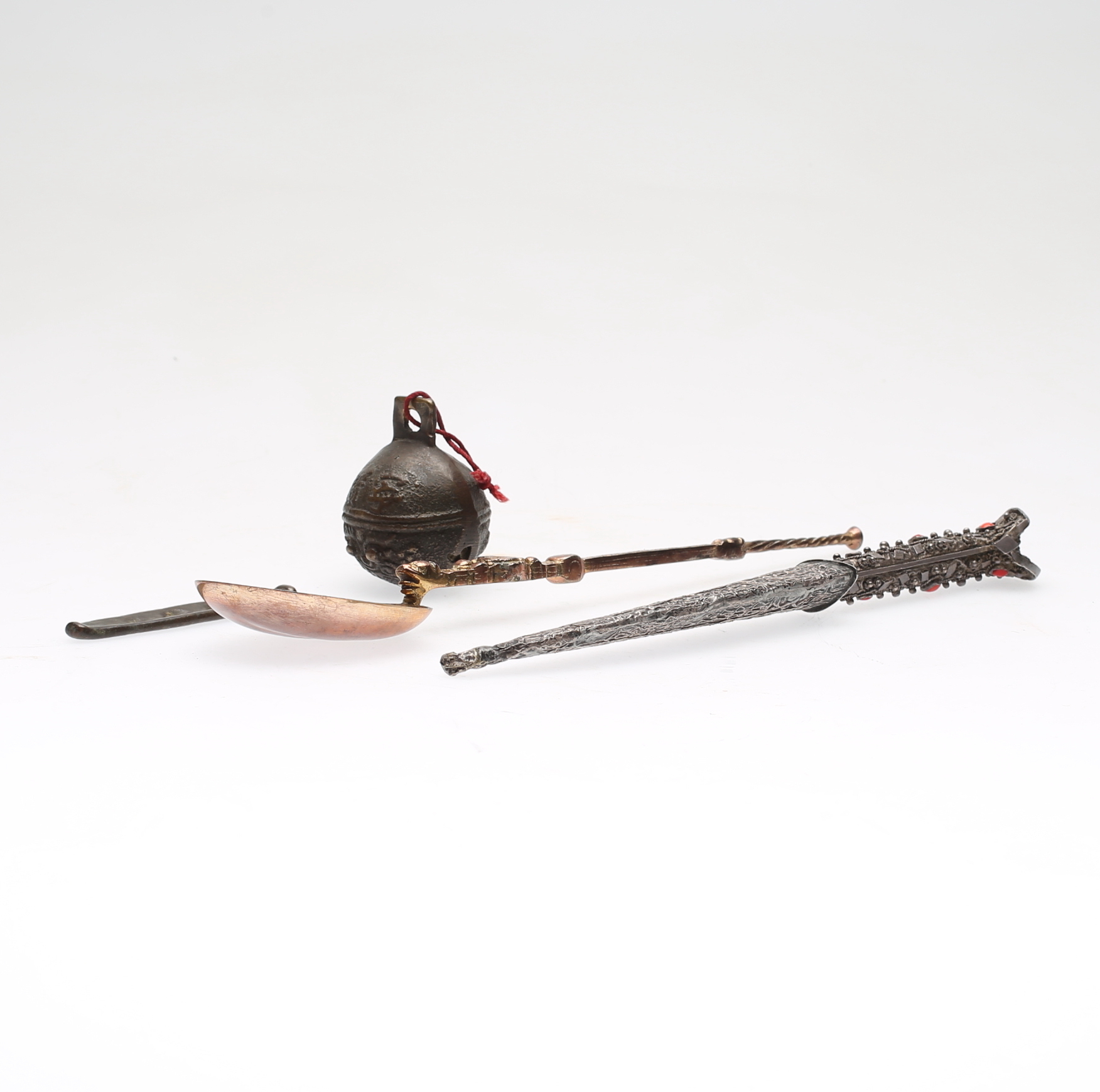 459363. ORIENTALISKE OBJEKTER, 4 stk., metal, 20. århundrede.