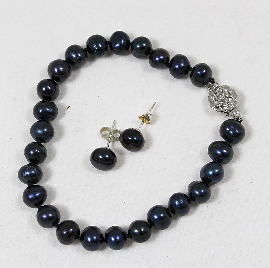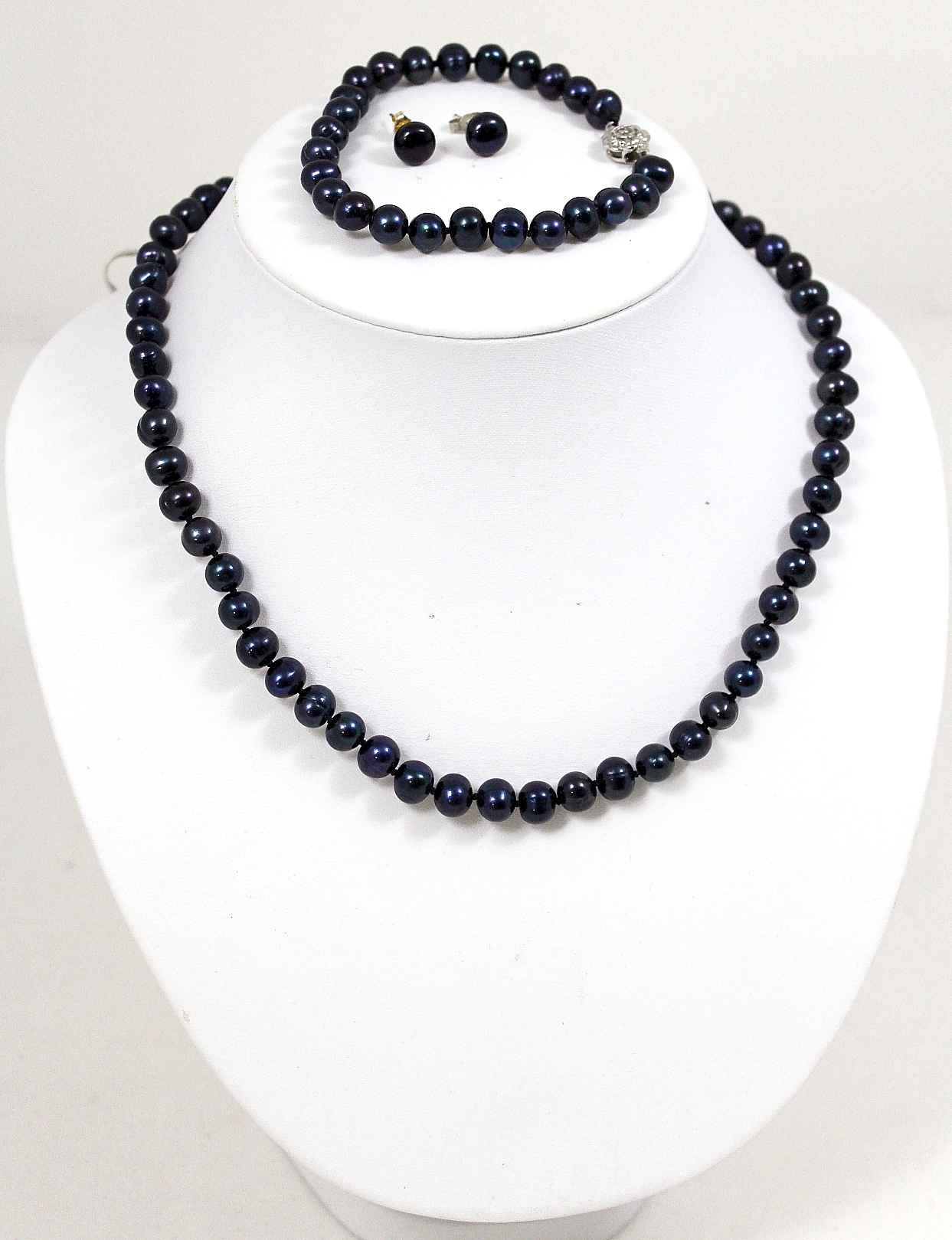 459506. SMYKKE SÆT. blå sorte kulturperler.