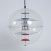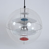 VP-Globe pende l med skærme af lakeret og poleret aluminium, monteret i kugle af klart plexiglas. Formgivet 1969, fremstillet hos Verpan. Ø 40 cm. Original foret emballage medfølger.