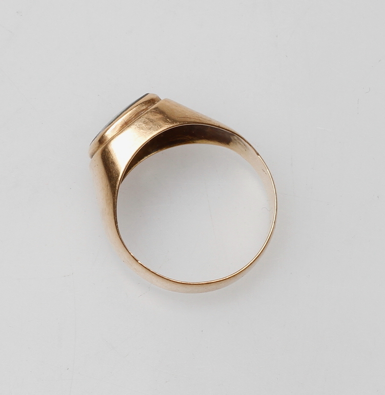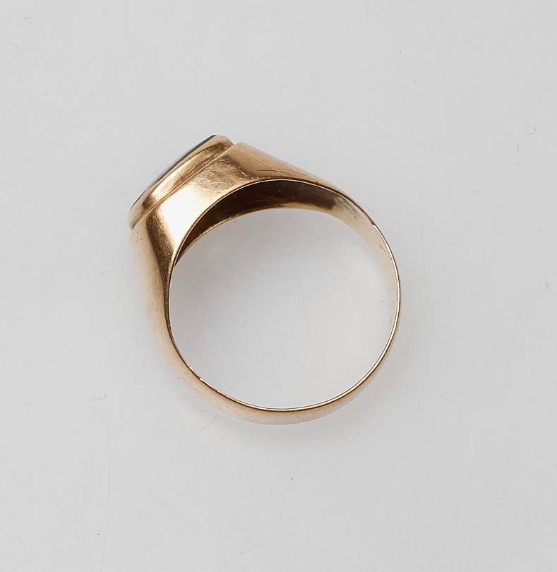 460045. Signetring, 18k guld, med sten, totalvægt ca. 4,4 gr.