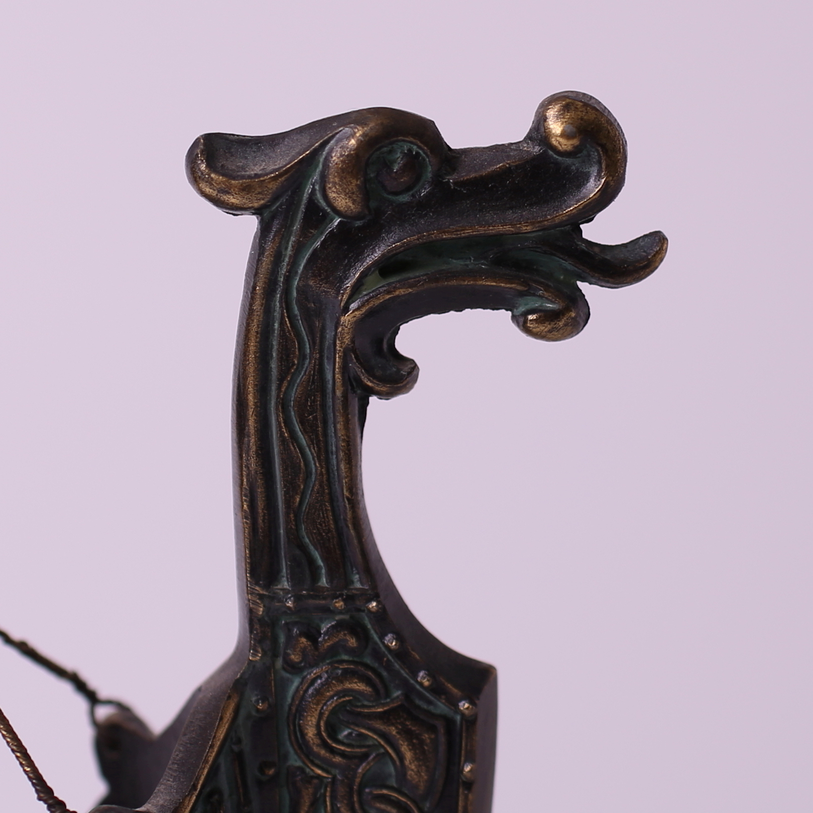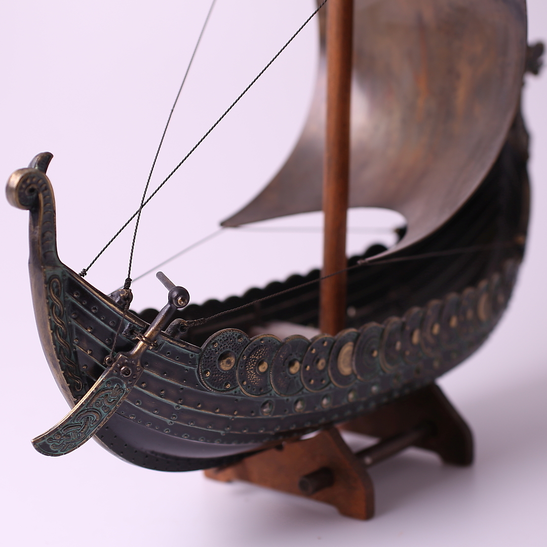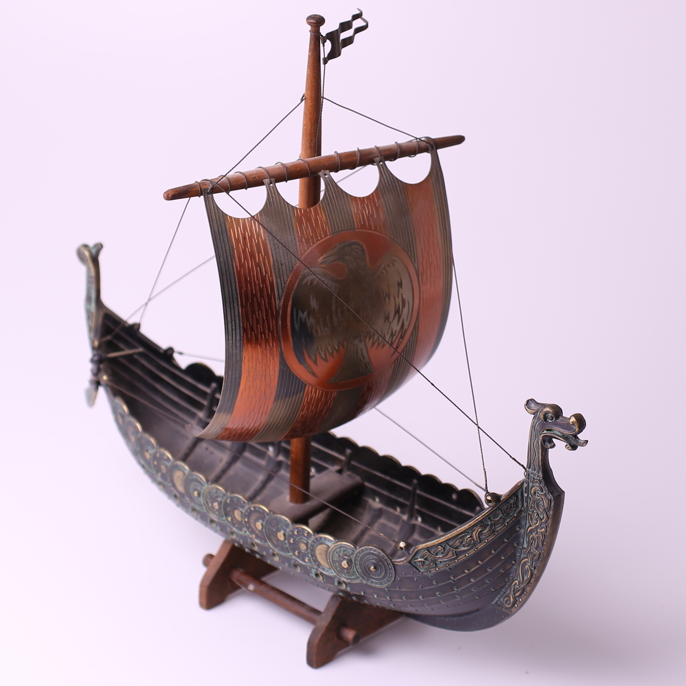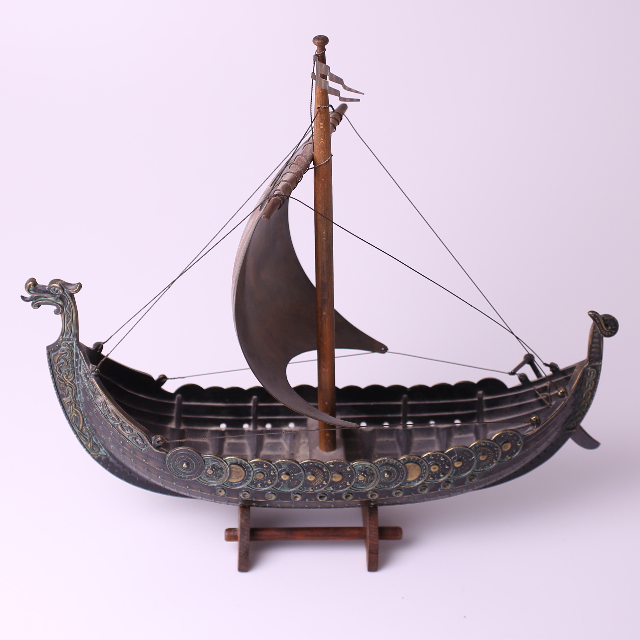 460335. MODELBÅD - "Vikingeskib", messing/kobber, 20. århundrede.