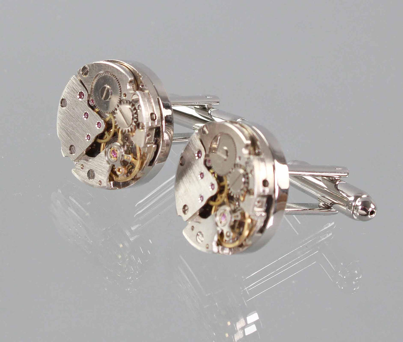 Et par i form af et ur, strikket i krom med stor sans for detaljer, sidediameter ca. 17 mm.
