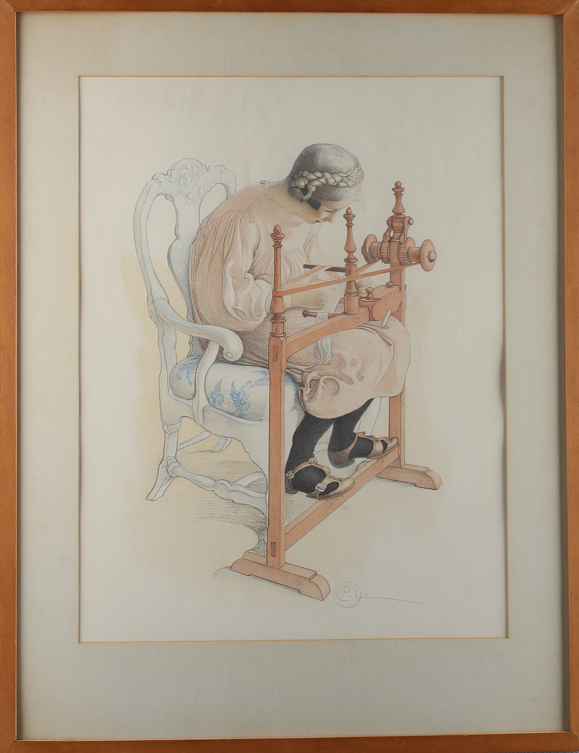 461464. CARL LARSSON. EFTER. "Pigen, der væver røde guldbånd", tryk.