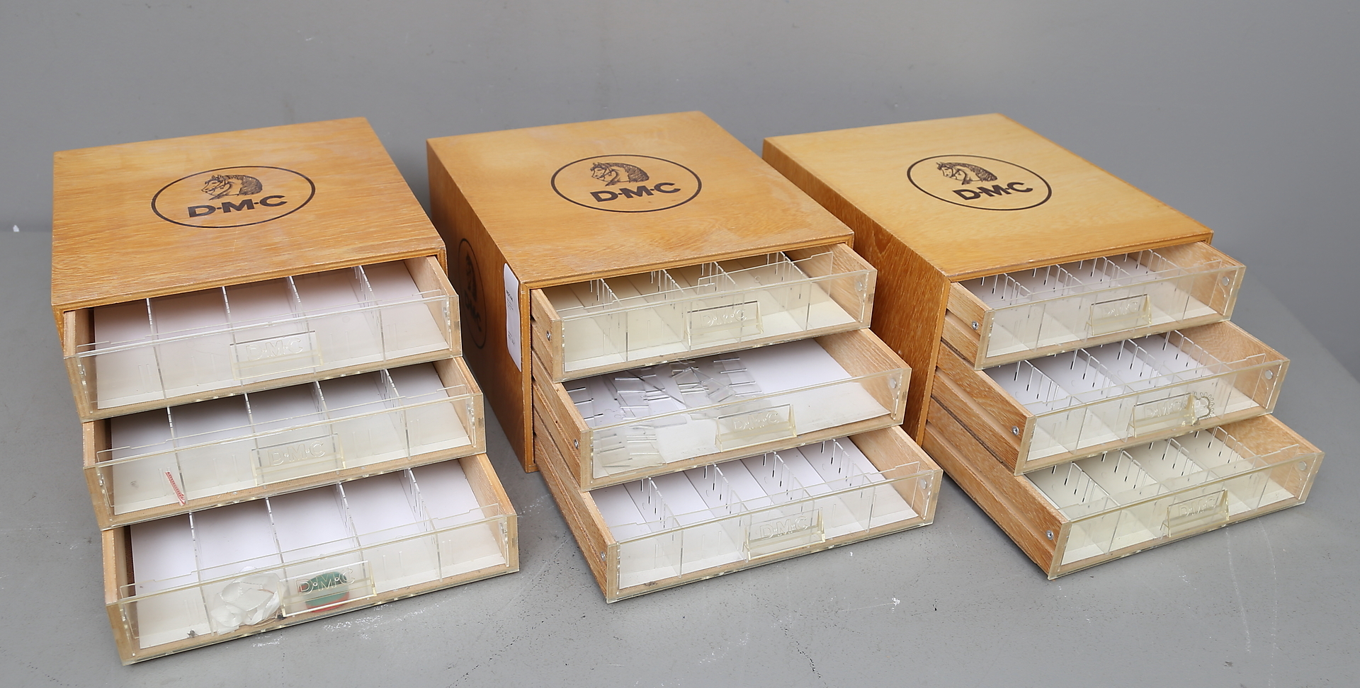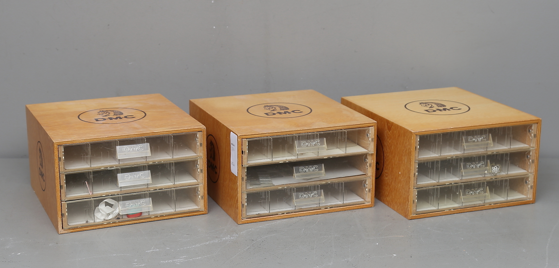 462144. WIRE BOX, 3 stk, mærket DMC, 1900-tallet.