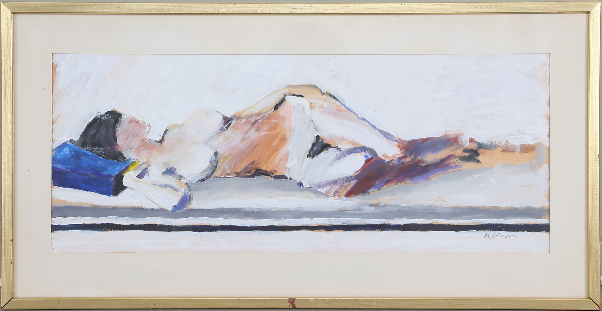 463005. ANDERS LÖNN. Portræt, blandede medier, signeret.