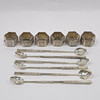 6 lange skeer, mønster i relief og dekoreret med sten på enden, længde 21,5 cm, totalvægt ca. 265 gram.