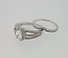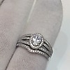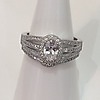 Den centrale sten er omgivet af en glorie af cubic zirconia sten med tre skulderbånd beklædt med flere cz sten.