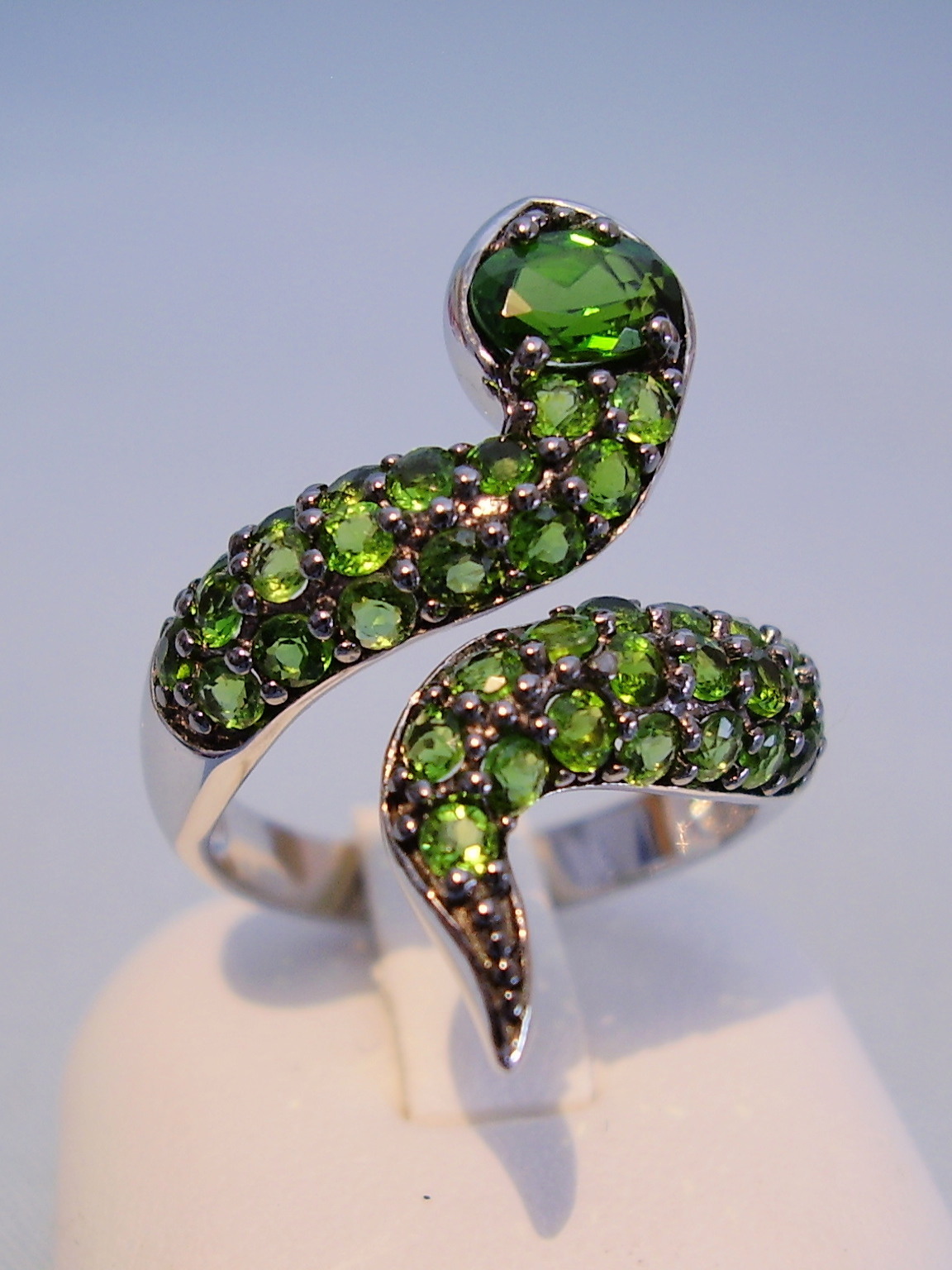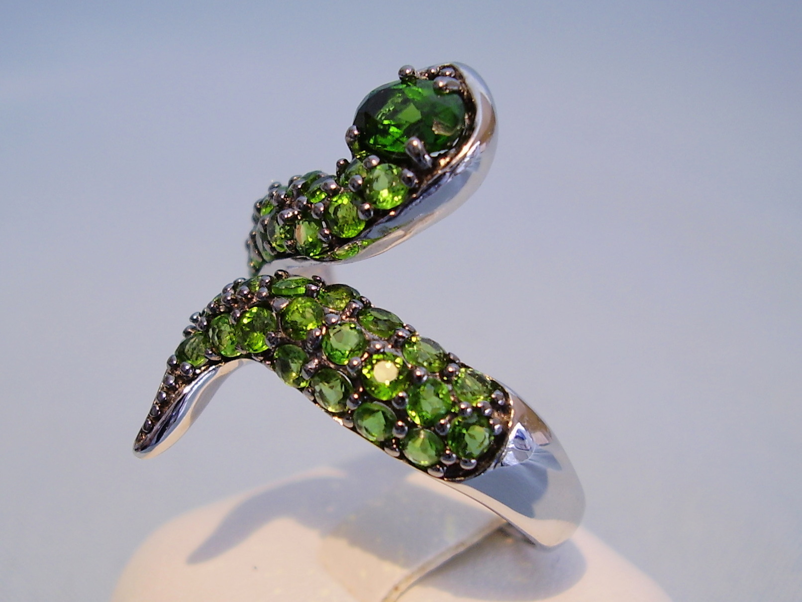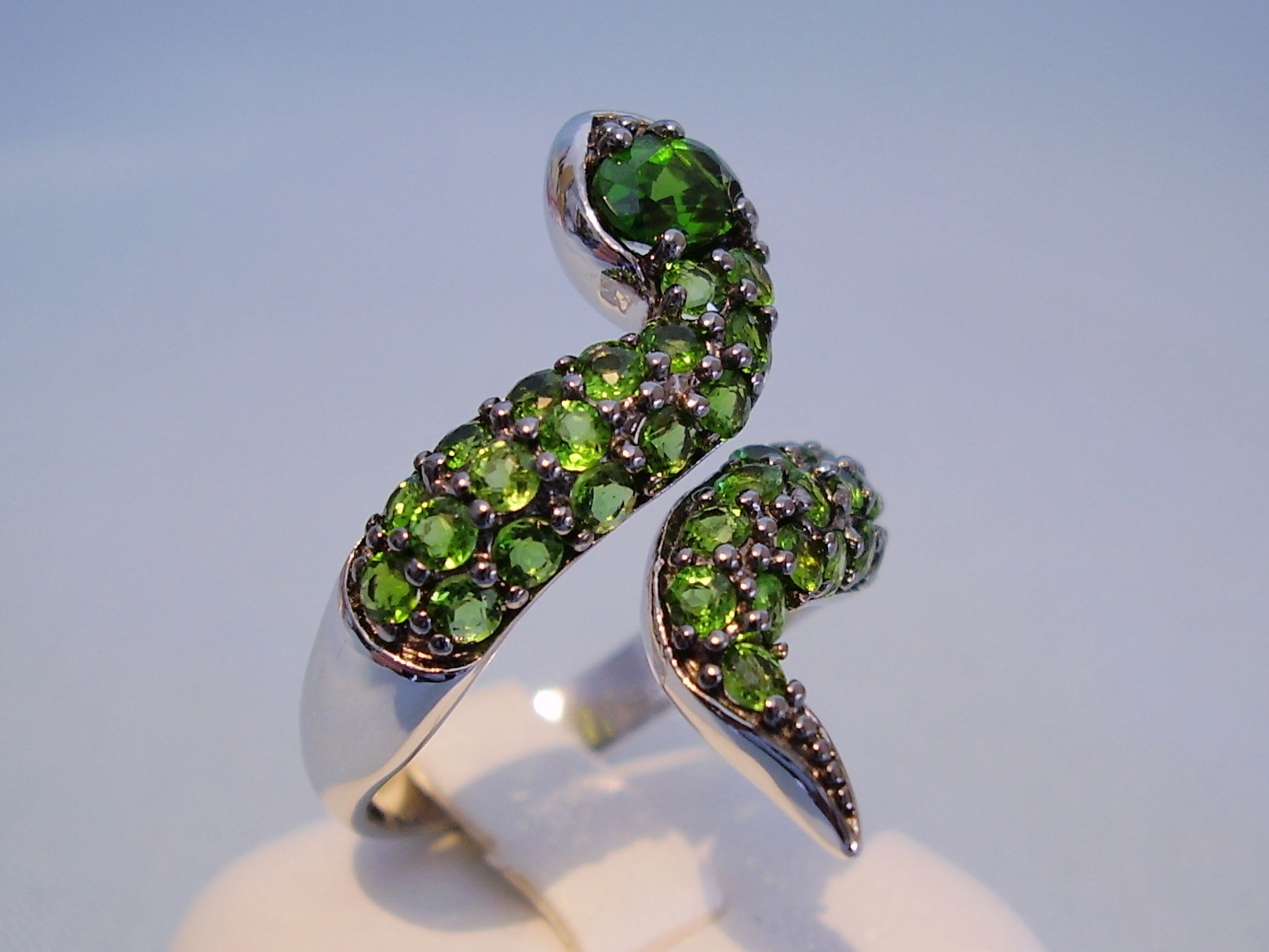466263. KROMEDIOPSIDE RING SØLV 925 SLANGERING.