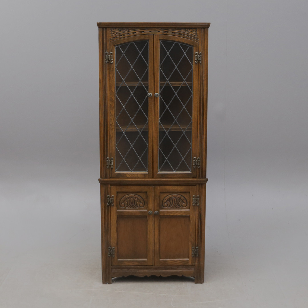 4664030. HJØRNE VITRINESKAB.