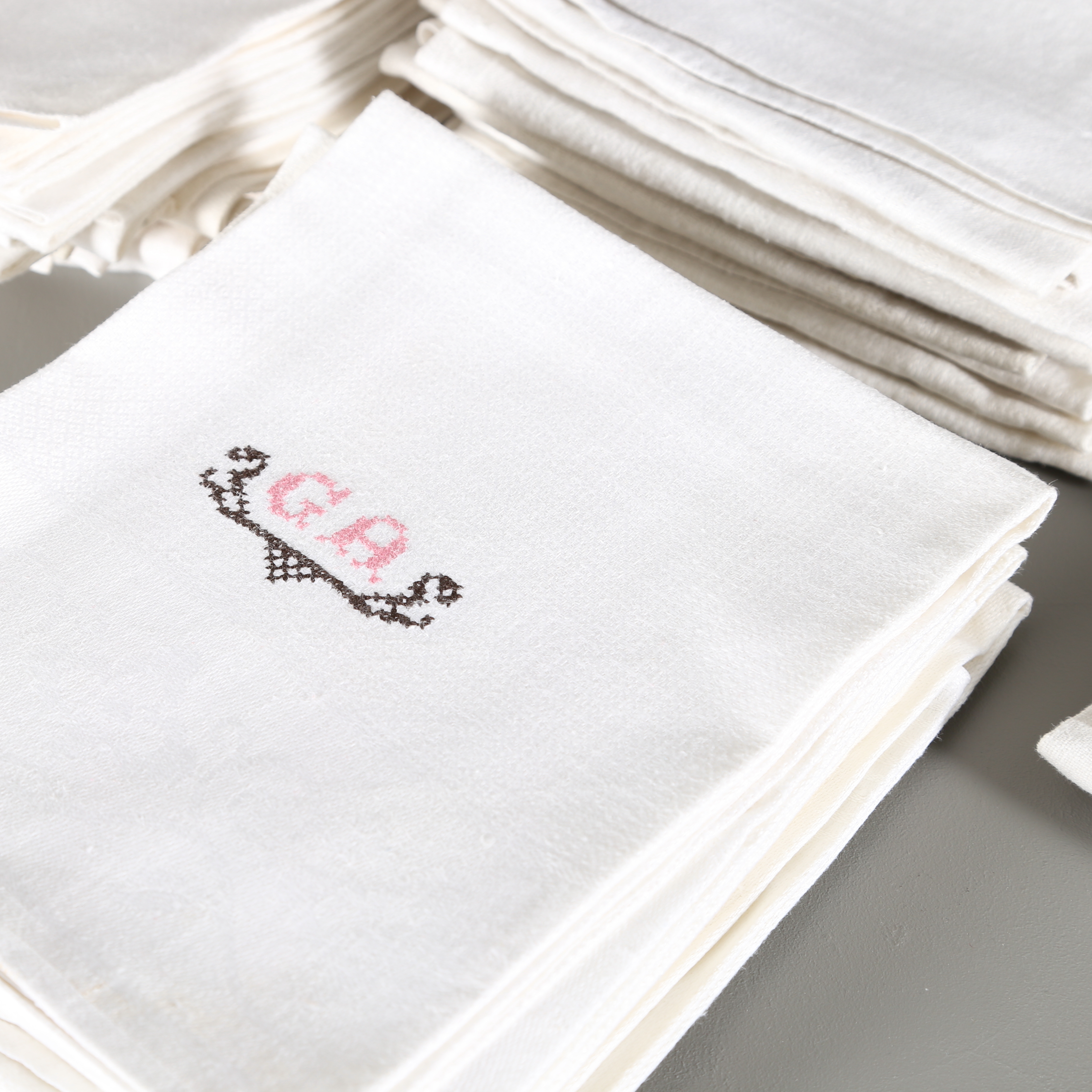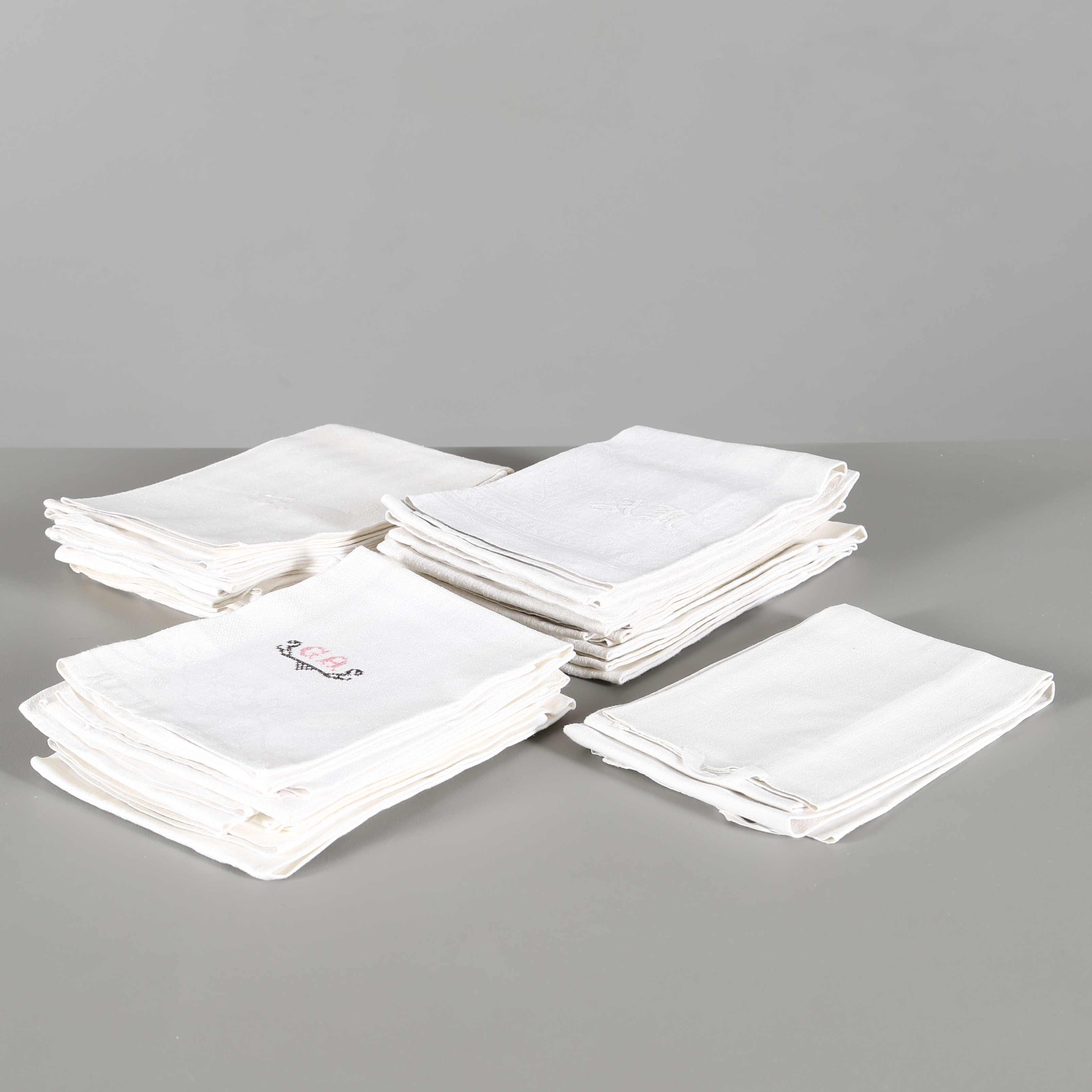 466406. Sæt linnedhåndklæder, 28 stk, forskellige modeller, monogram.