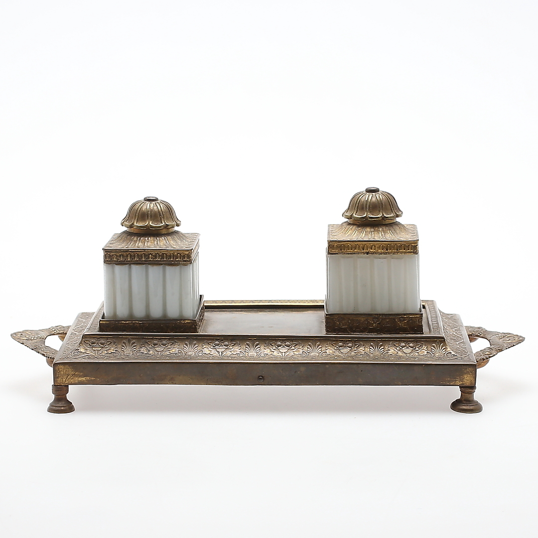 467145. SKRIVEBORD, bronze/glas, Empirestil, ca. 1900.