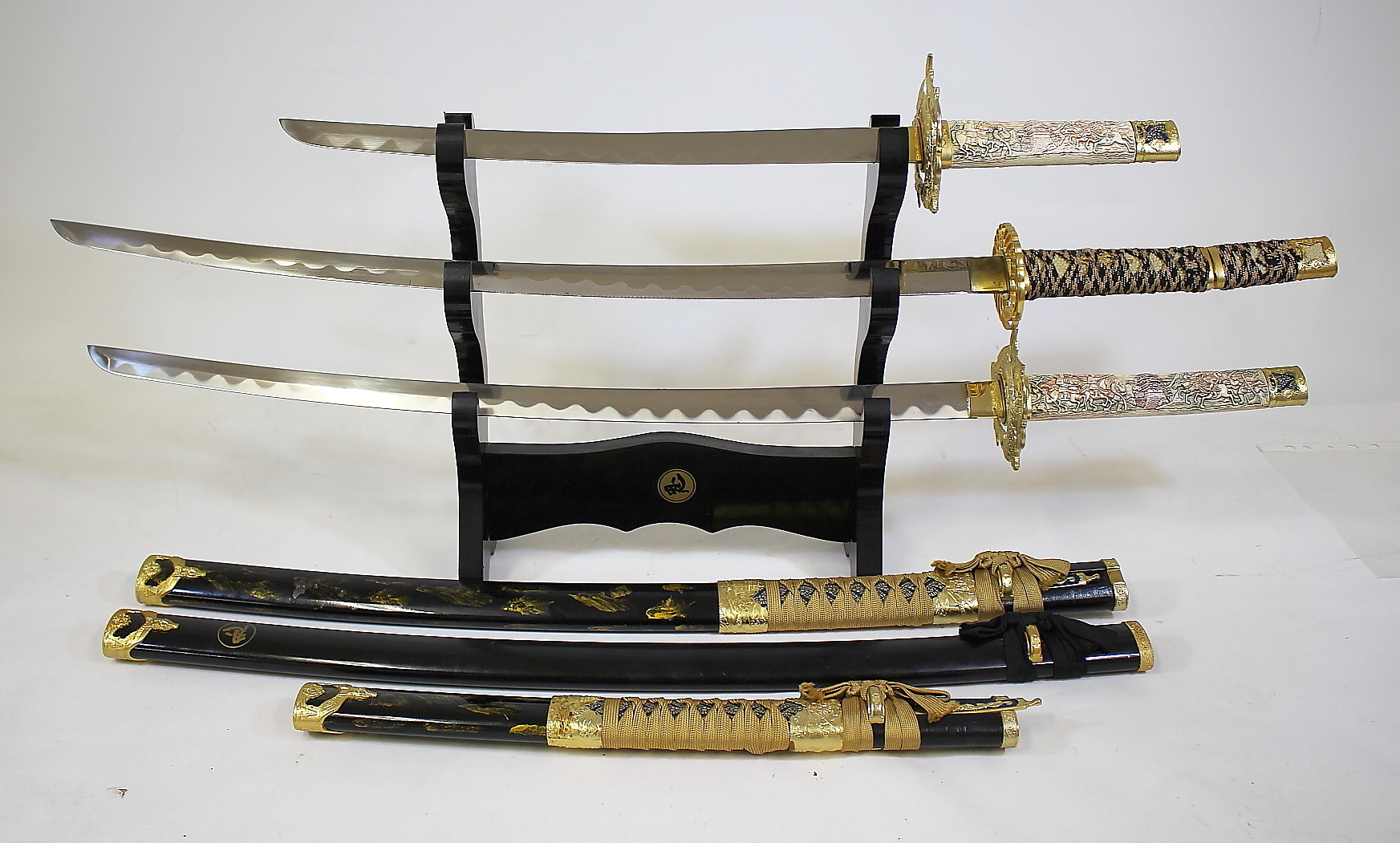 467206. SAMURAI SWORD, 3 stk i stativ, Japan.