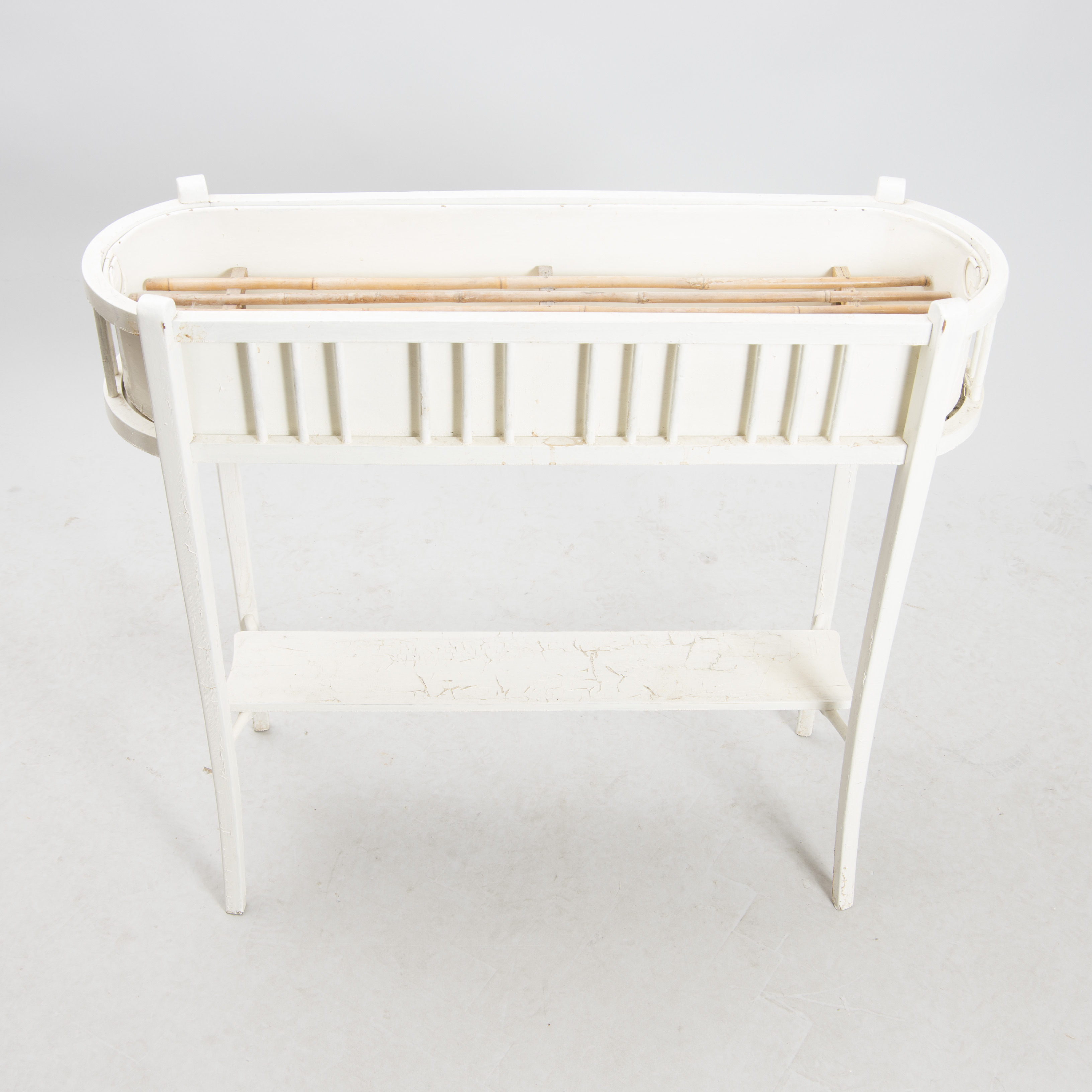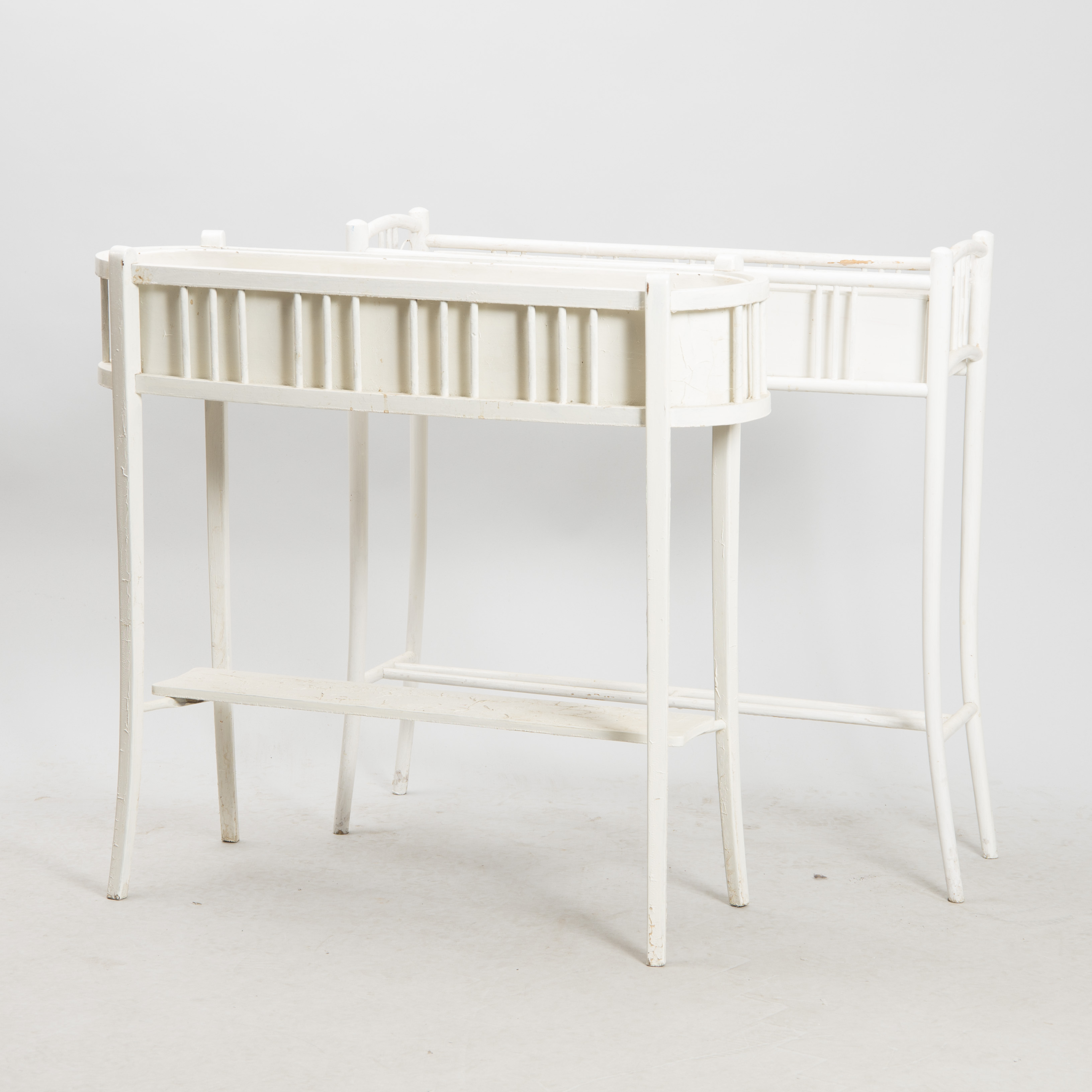 467268. BLOMSTERBORD, 2 stk, hvidmalet, træ/metal.