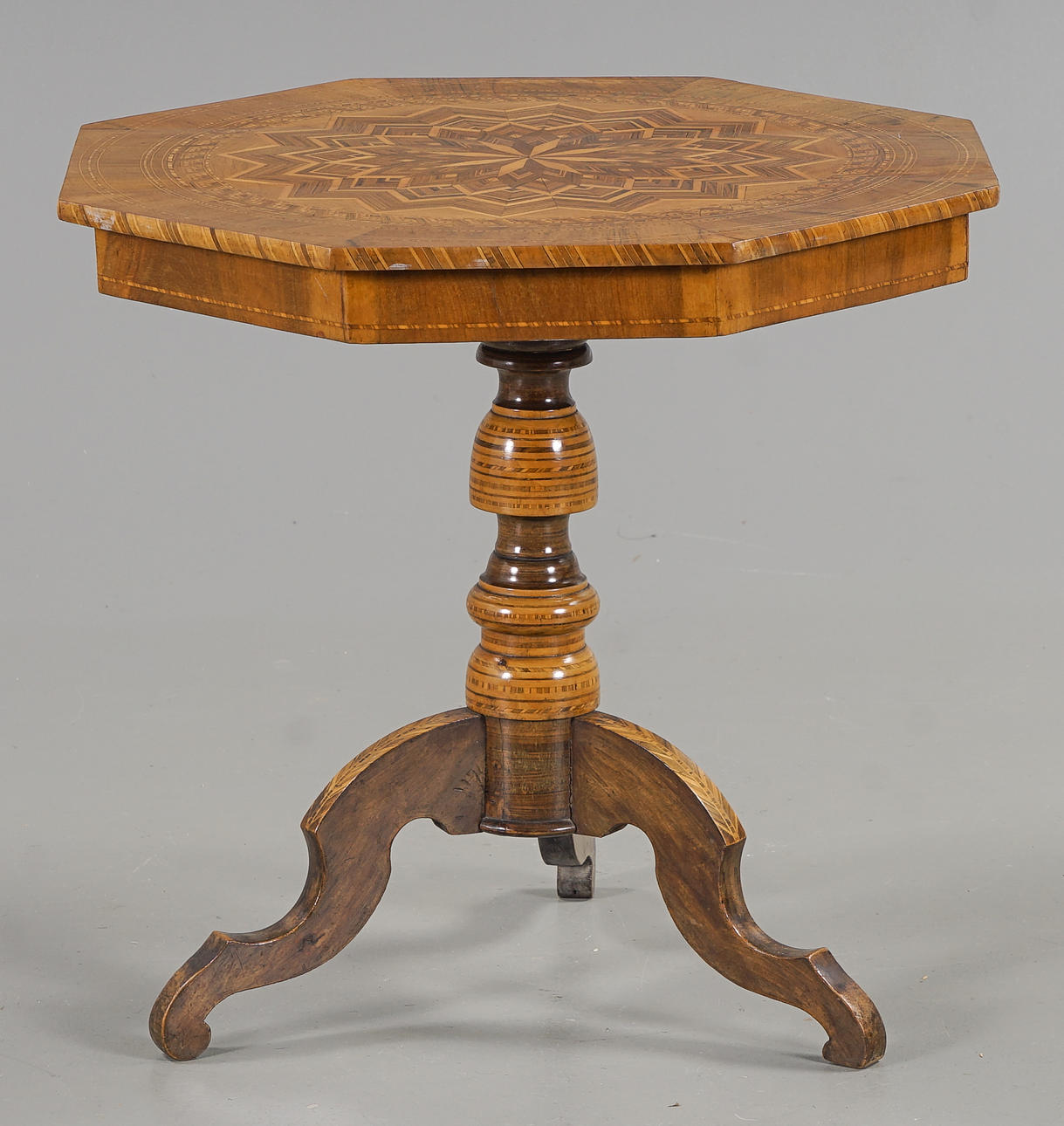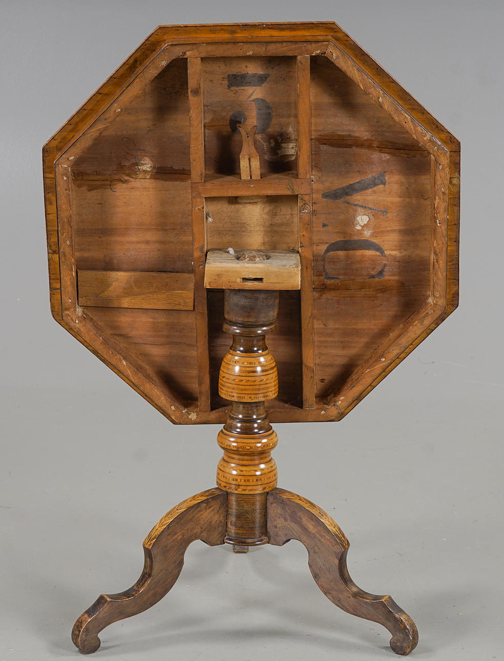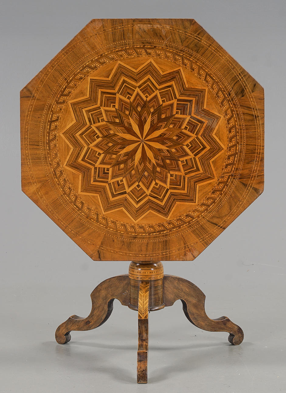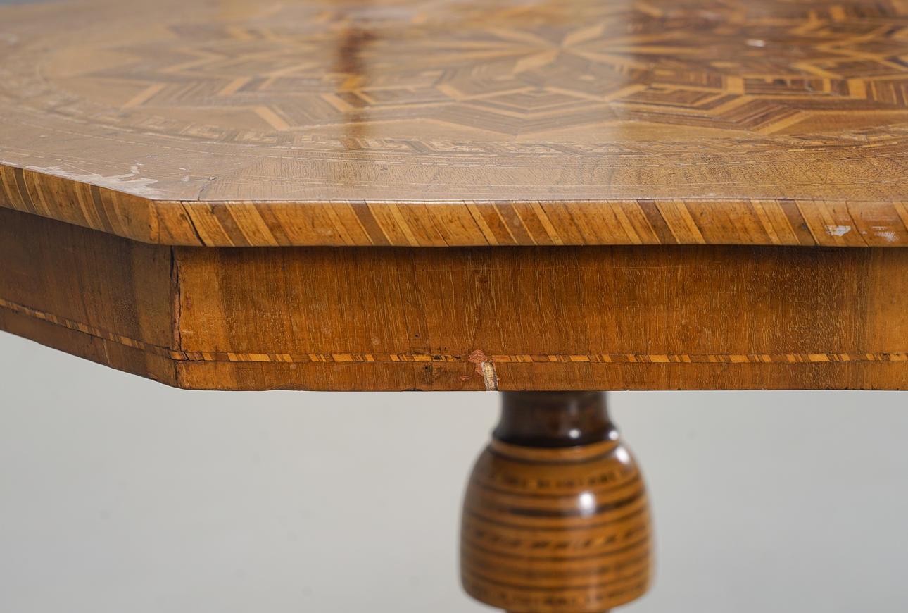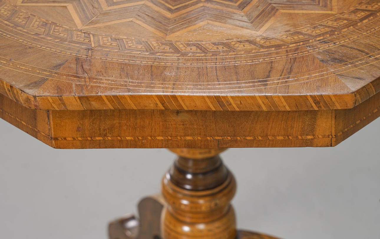 Fineret med valnød, blandt andet rigelig intarsia-indretning.