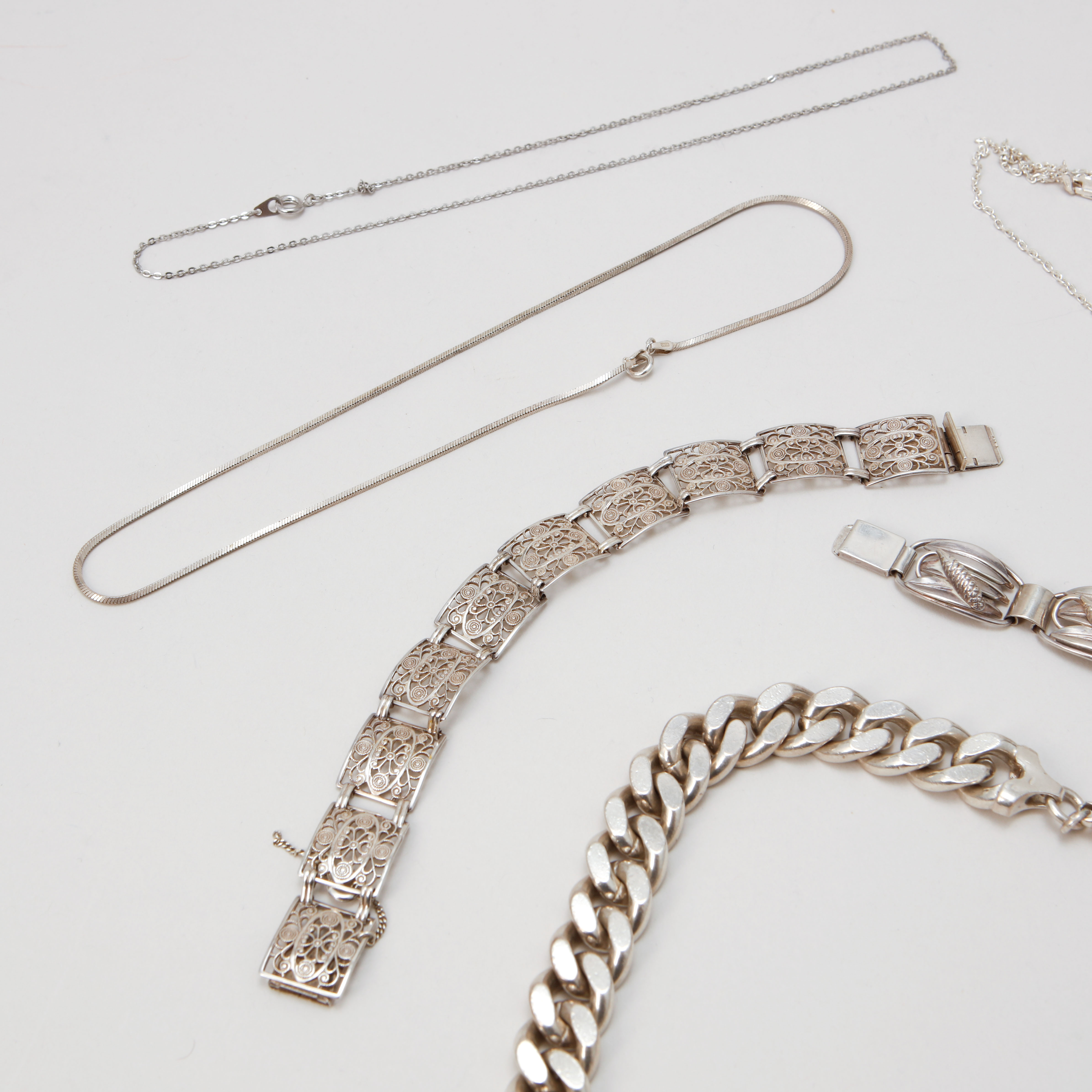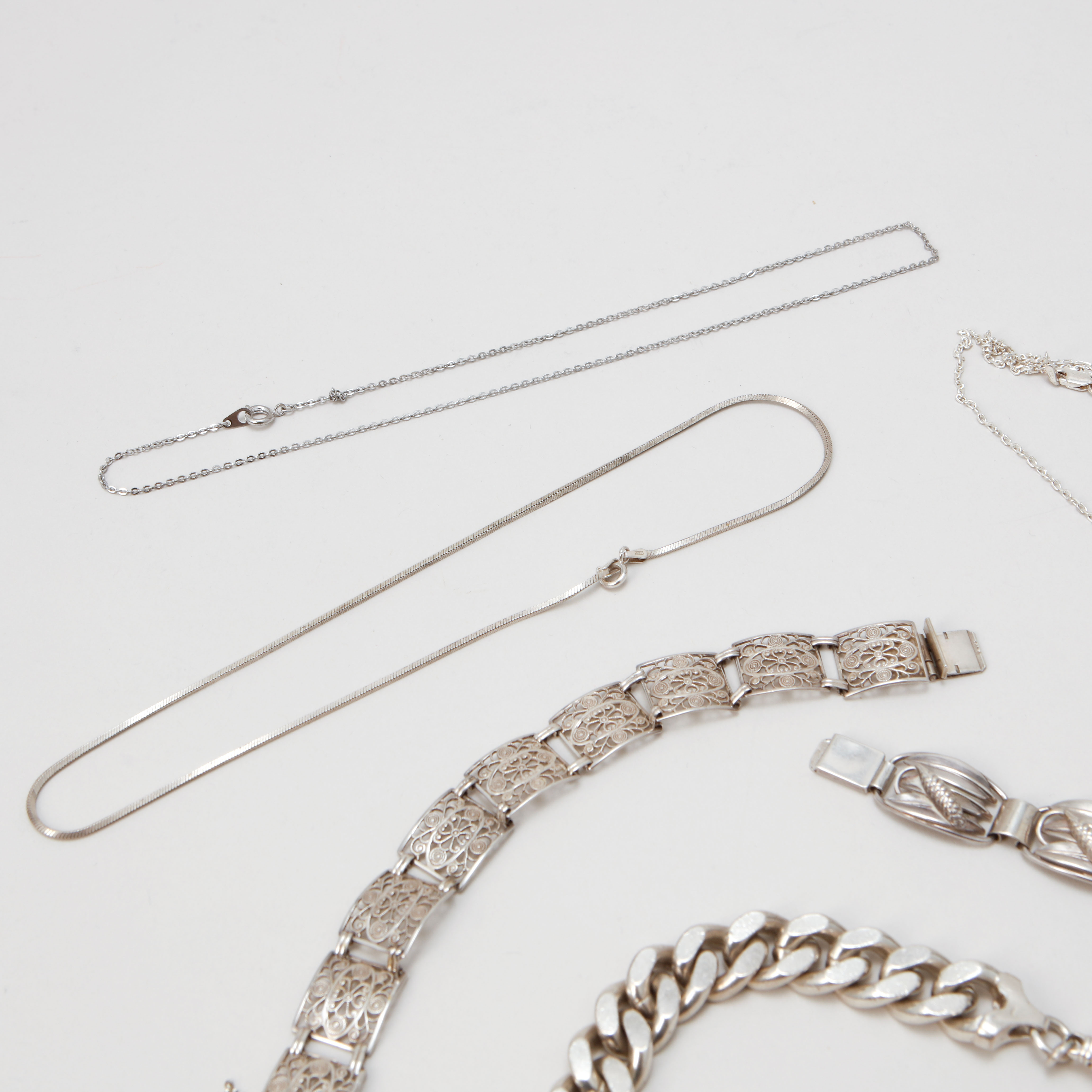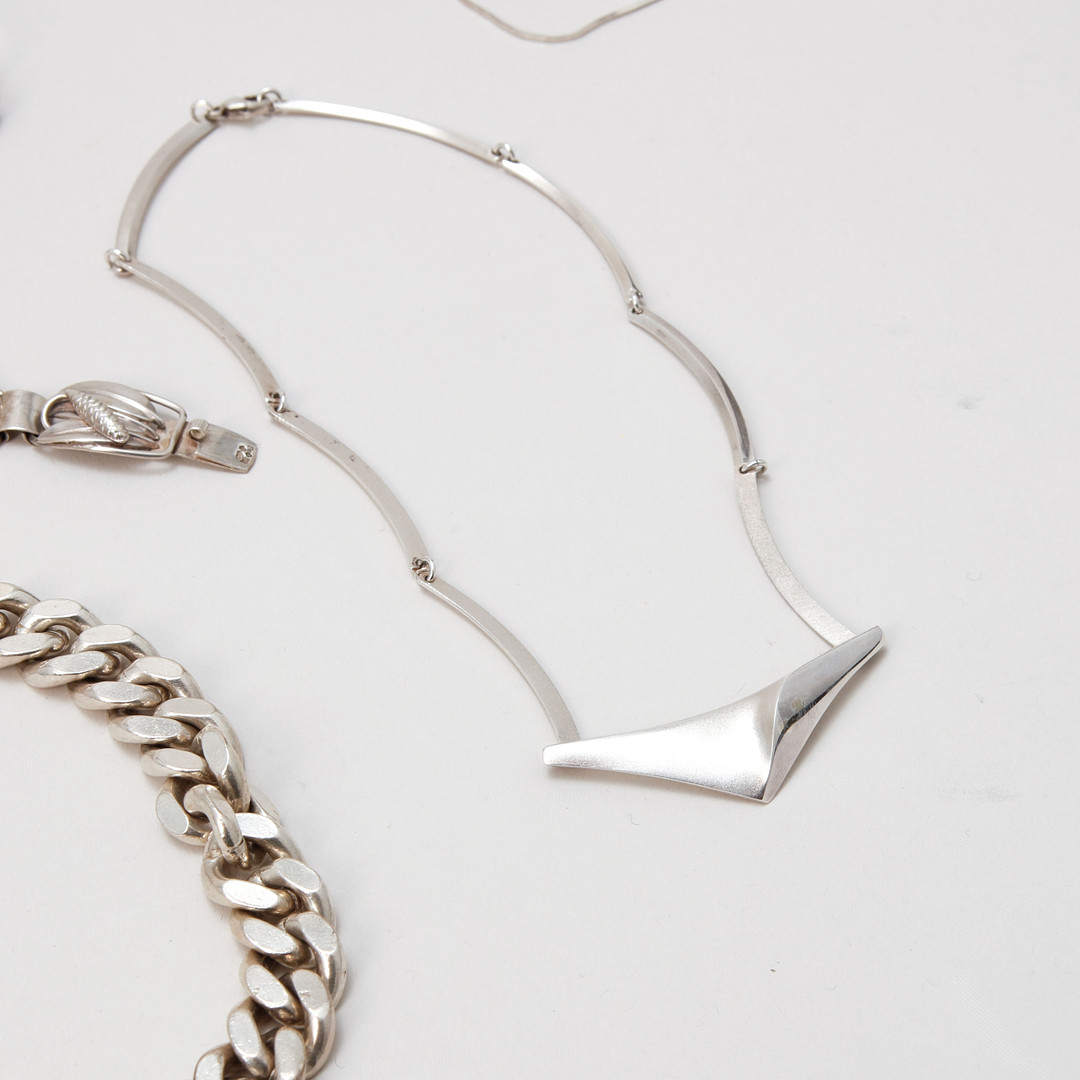 4685351. SMYKKER, 9 stk, sølv, vægt ca 325 gram.