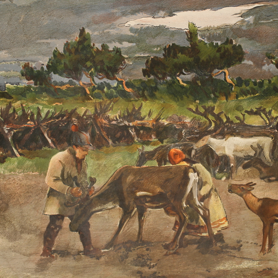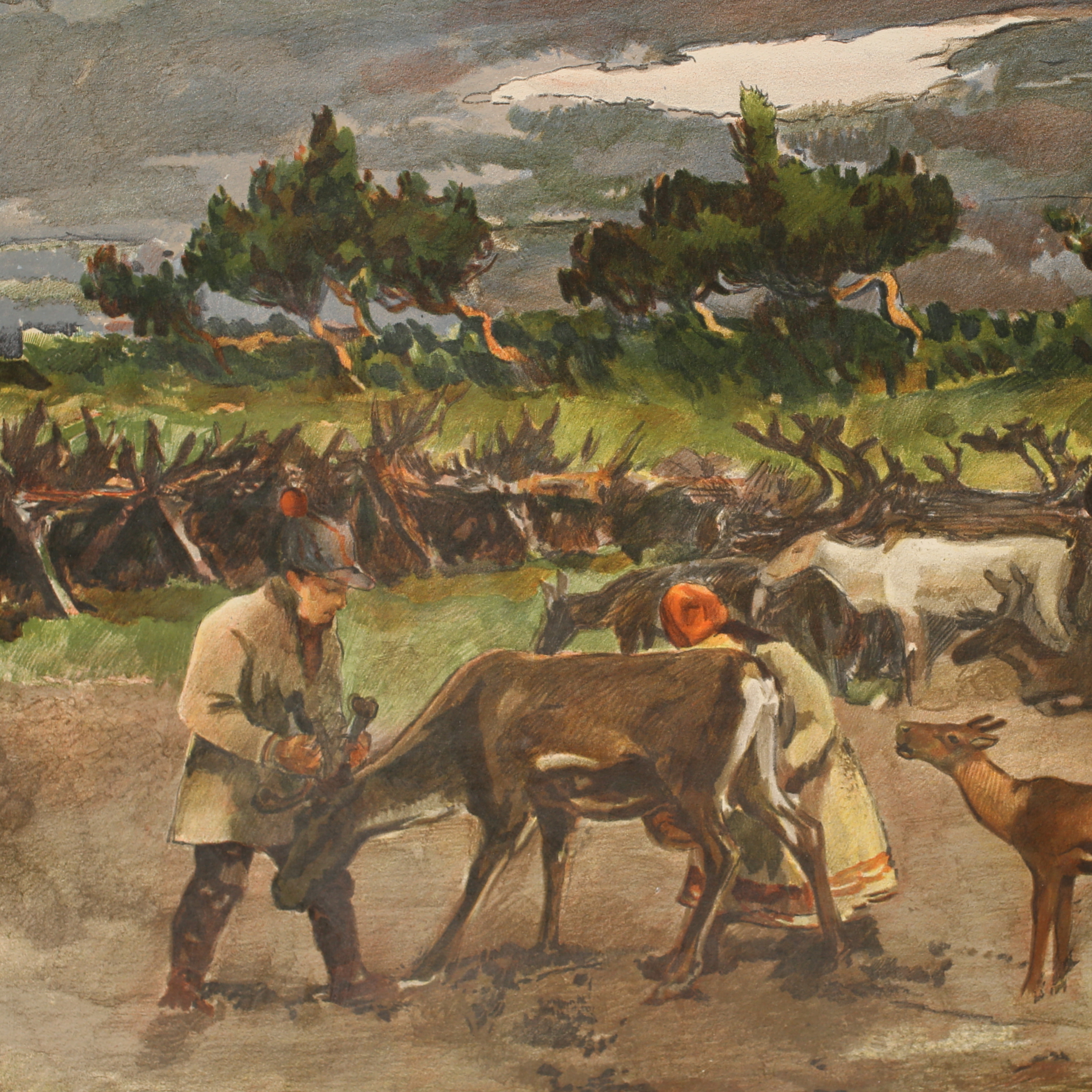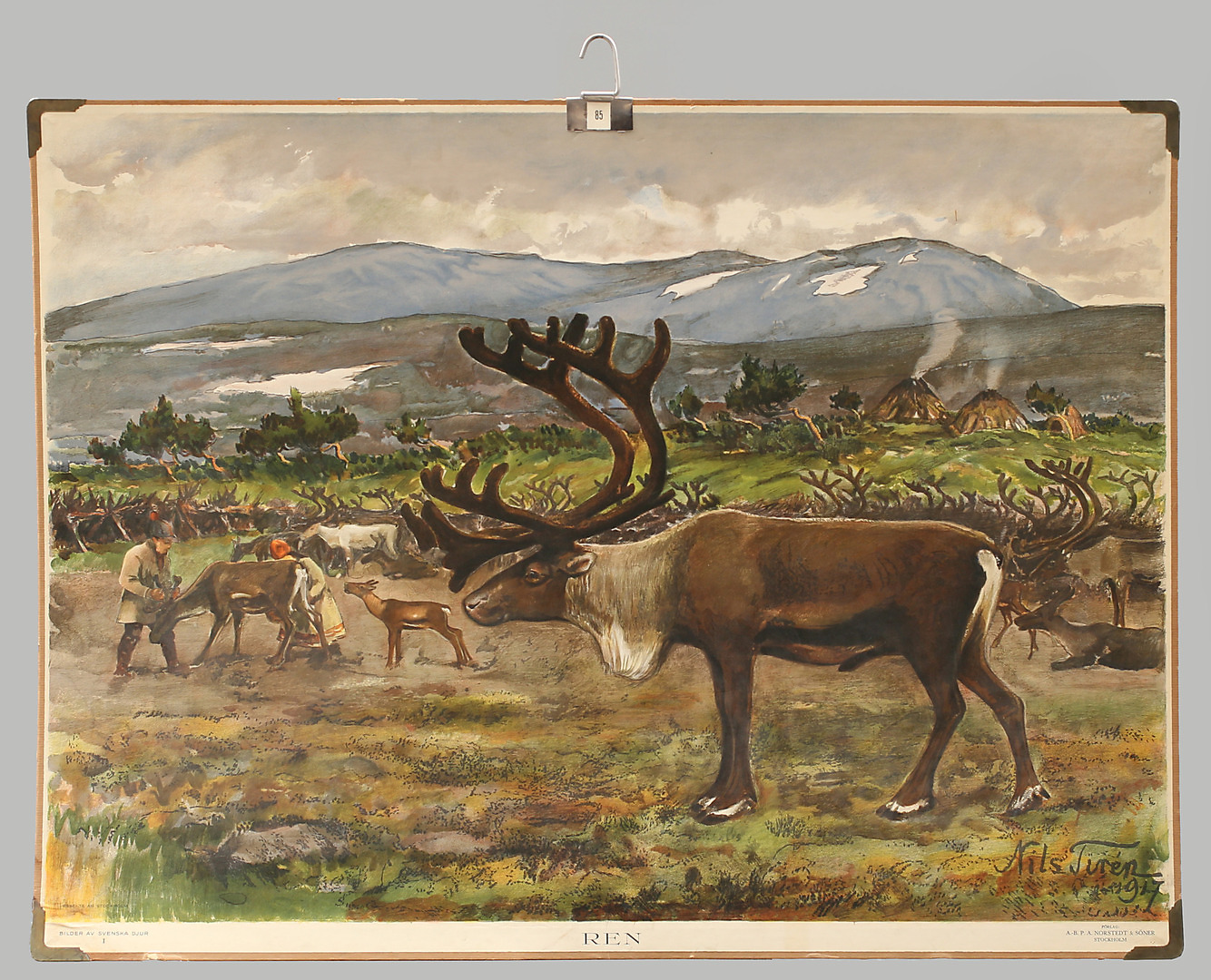468584. SKOLEPLATE, offsettryk. Rensdyr (Rangifer tarandus).