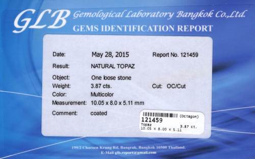 468631. Topaz, 3,87 CT. Regnbue, certifikat.