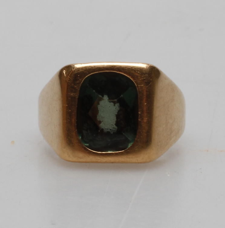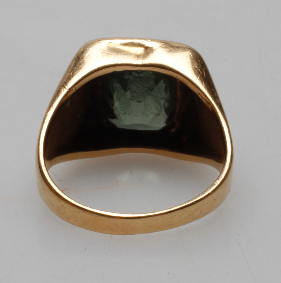 469590. Signetring MED GRØN STEN, 18k guld, vægt ca 5,8 gr.