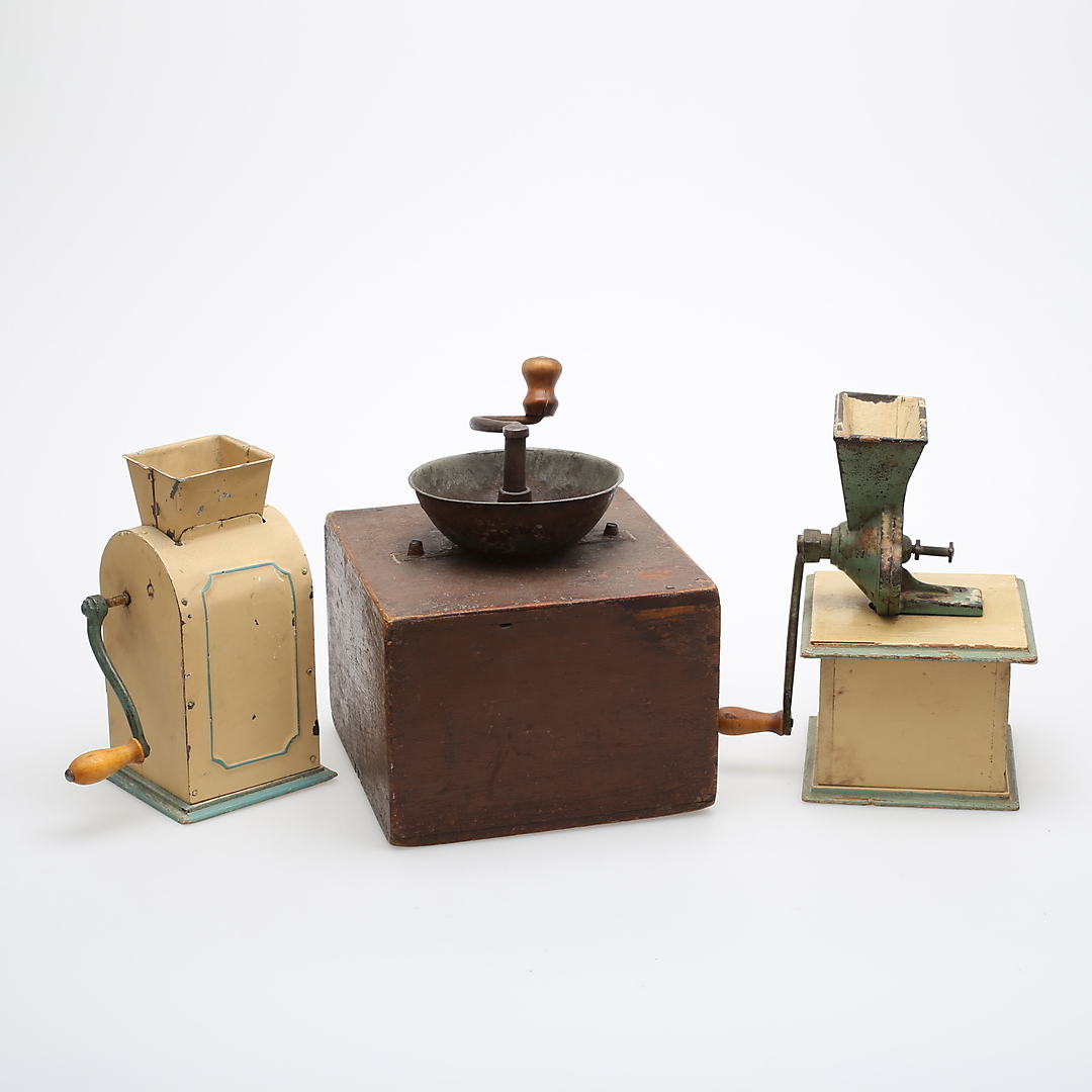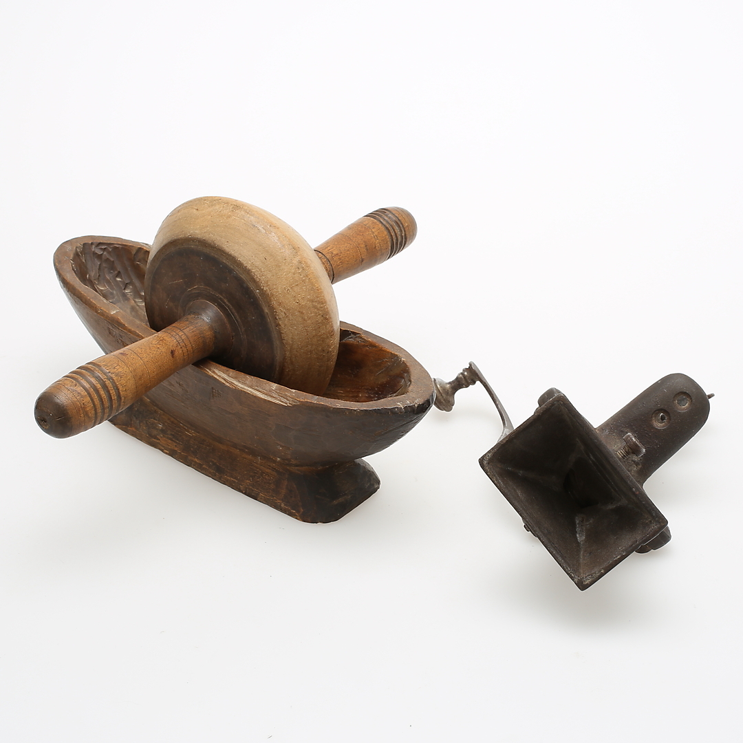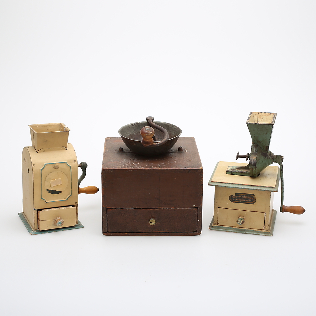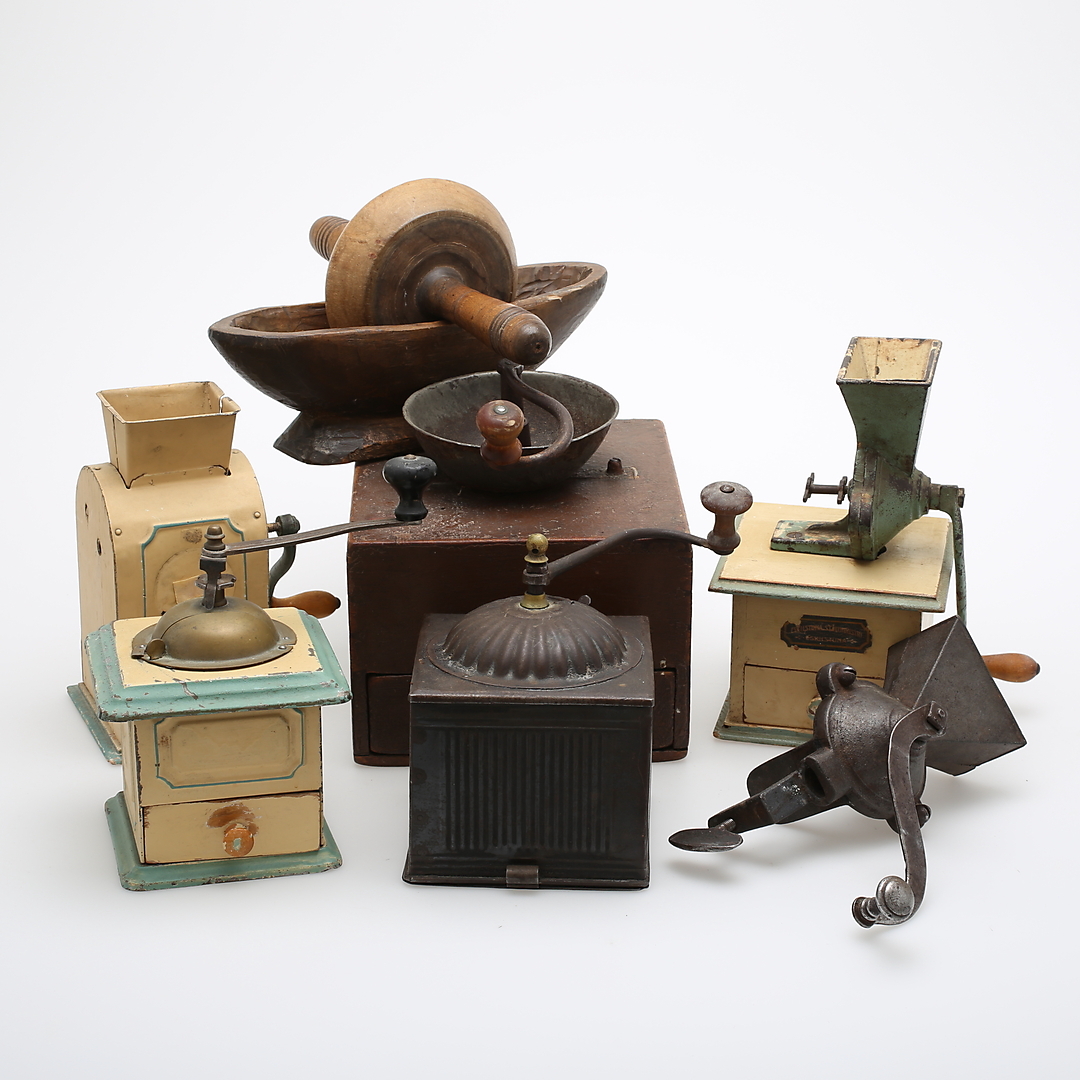 470049. KAFFEKVÆNNE, 7 stk., træ, kobber, jern mv.