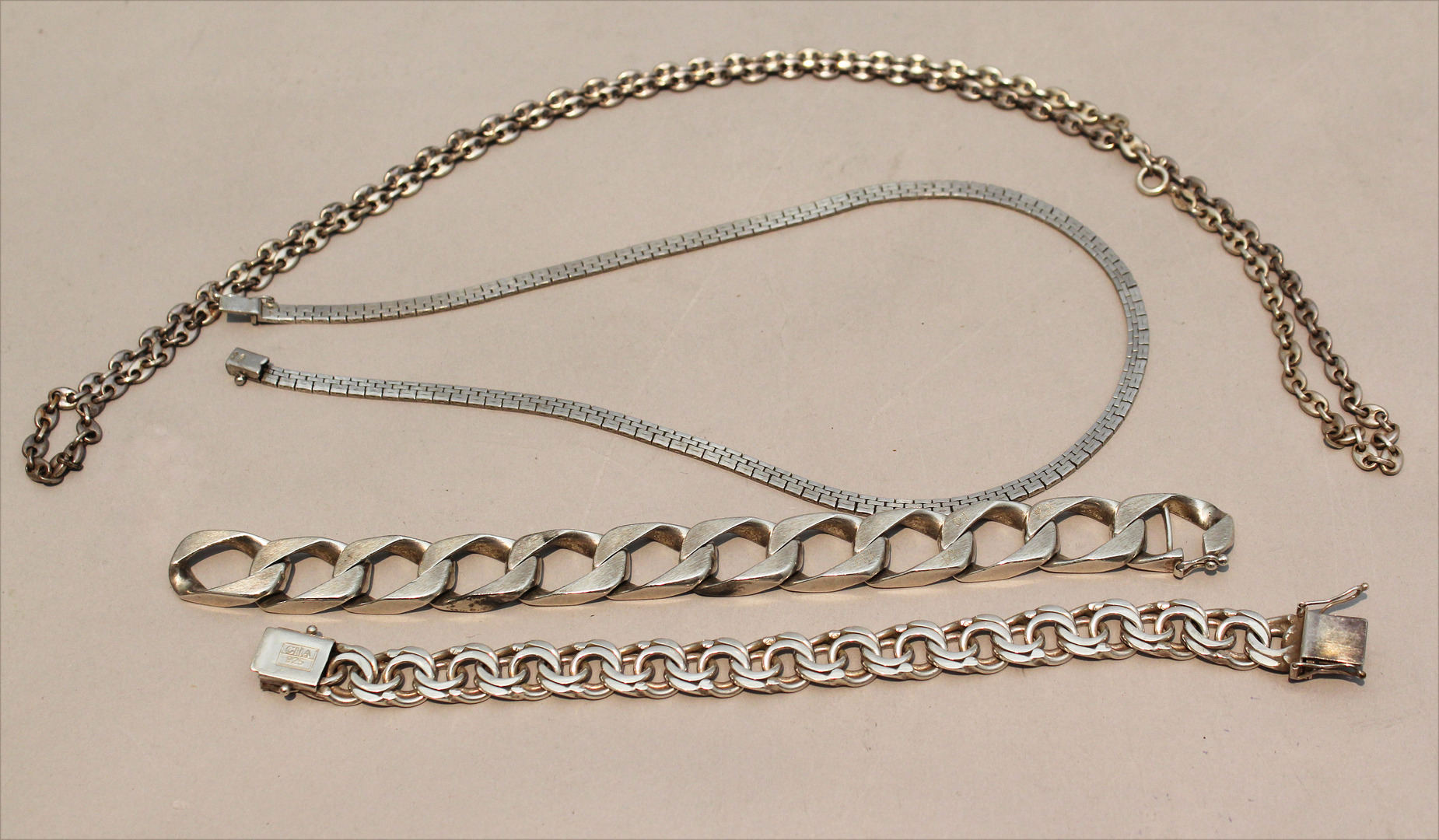 47016. Sæt sølvsmykker (5). Samlet vægt 129 gram.