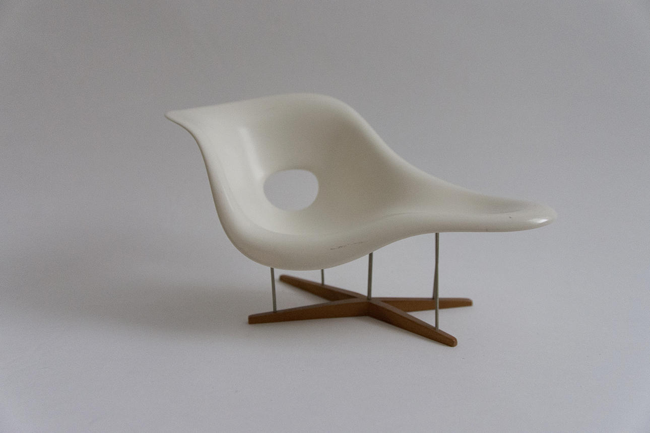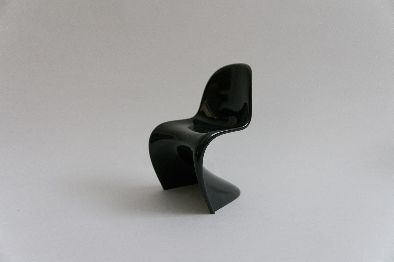 Bestående af en sort Panton stol, mål: 14,5 x 8,5 x 7,5 cm, en DKR Wire Chair, mål: 13,5 x 7 x 8 cm og en La Chaise, mål: 15 x 24 x 14 cm.