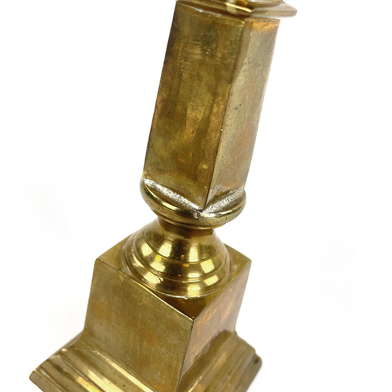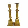 1 par messing lysestager med kvadratfod. Ca. 6x6 cm, højde 21 cm.