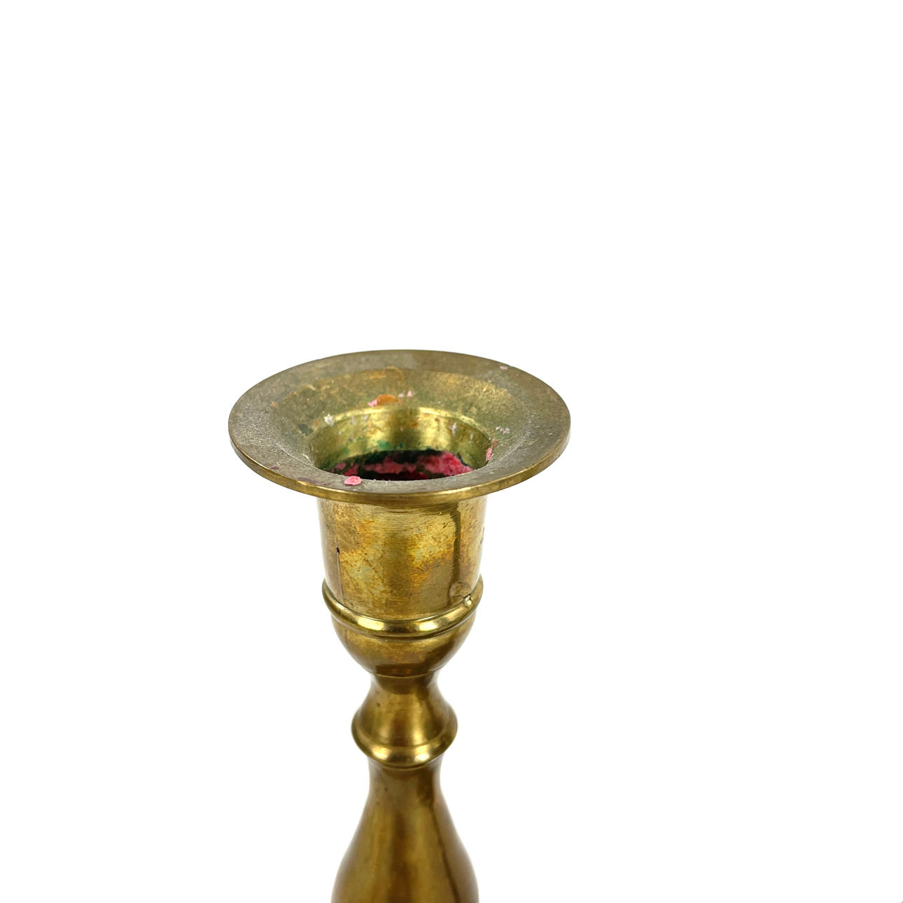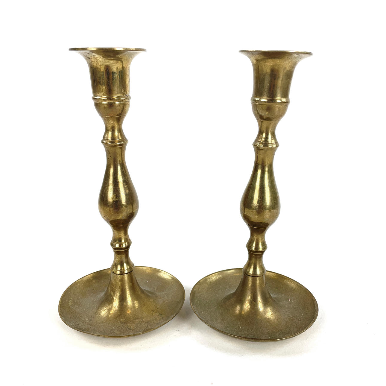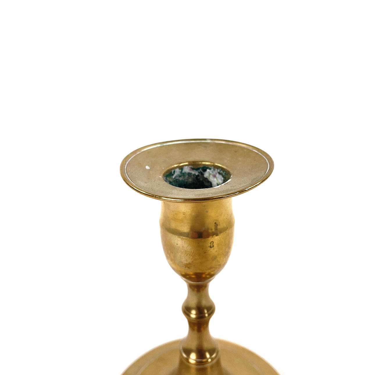 1 par messing lysestager. Højde ca. 16 cm, diameter ca. 8 cm.